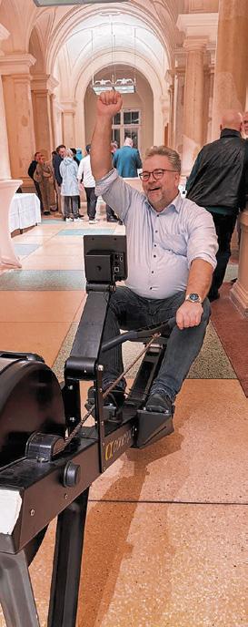 Auch sportlich konnten sich die Gäste betätigen. Hier: Stephan Standfuß beim Sieg gegen virtuelle Gegner an der Rudermaschine