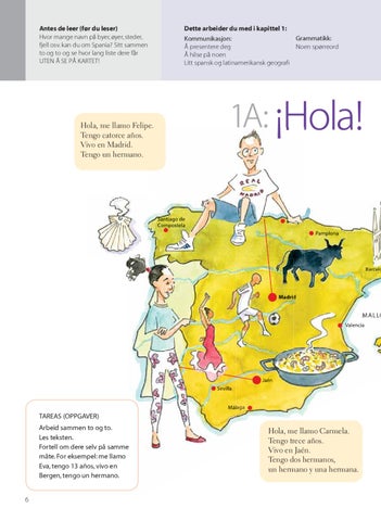 TAREAS (OPPGAVER) Arbeid sammen to og to. Les teksten. Fortell om dere selv på samme måte. For eksempel: me llamo Eva, tengo 13 años, vivo en Bergen, tengo un hermano. 6