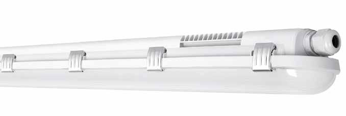 Damp Proof Gen 2 wordt geleverd in 2 lengten: 1200 en 1500 cm, en in vele verschillende versies die een uitstekend lichtrendement leveren in een robuuste (IK08) en vochtbestendige (IP65) behuizing van polycarbonaat. Ze zijn zeer eenvoudig en snel te installeren. Het aanpassingsbereik voor de montageklemmen is zo groot, dat bestaande montagegaten vaak nog kunnen worden gebruikt.