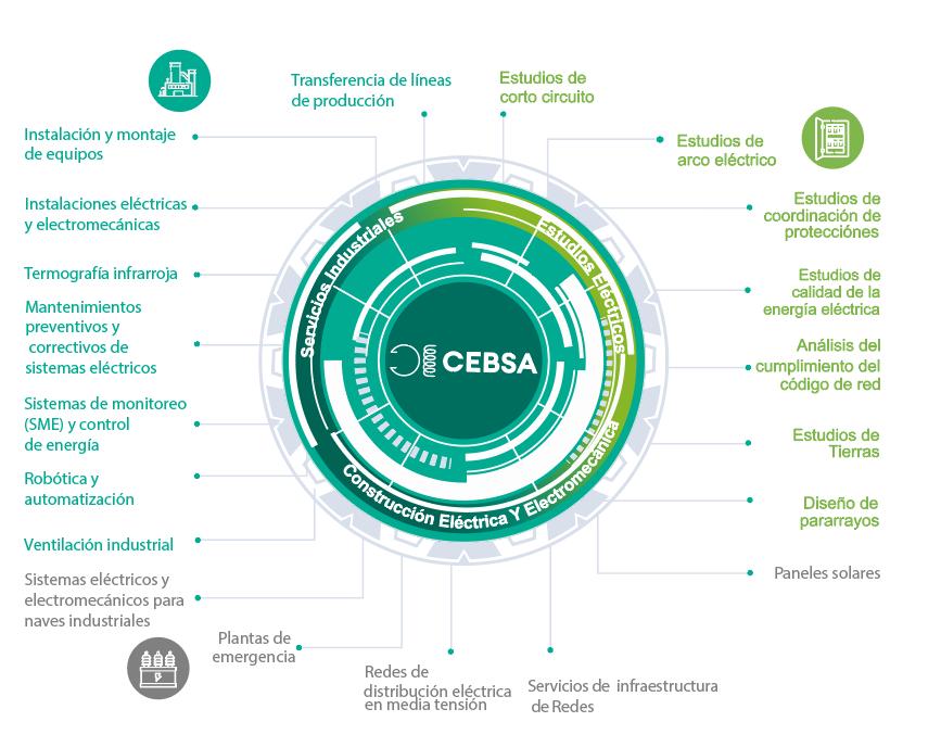 CEBSA es una empresa con características que la hacen imprescindible para el desarrollo y ejecución de proyectos electromecánicos. Desde el inicio se comprometen a escuchar los requerimientos y entender las necesidades de su cliente, para desarrollar un proyecto integral funcional contemplando la ingeniería de valor, optimizando los sistemas.