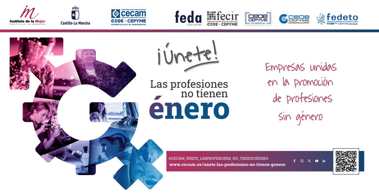 Para ello, en el marco de esta campaña, la Confederación ha diseñado una serie de actuaciones de información y difusión, entre las que destaca la creación de un espacio web específico, https://cecam. es/unete-las-profesiones-no-tienen-genero/, así como la elaboración de un video promocional de sensibilización dirigido al tejido empresarial y a la sociedad en su conjunto, y la publicación de un informe de diagnóstico de la realidad educativa y laboral de la mujer en CLM.
