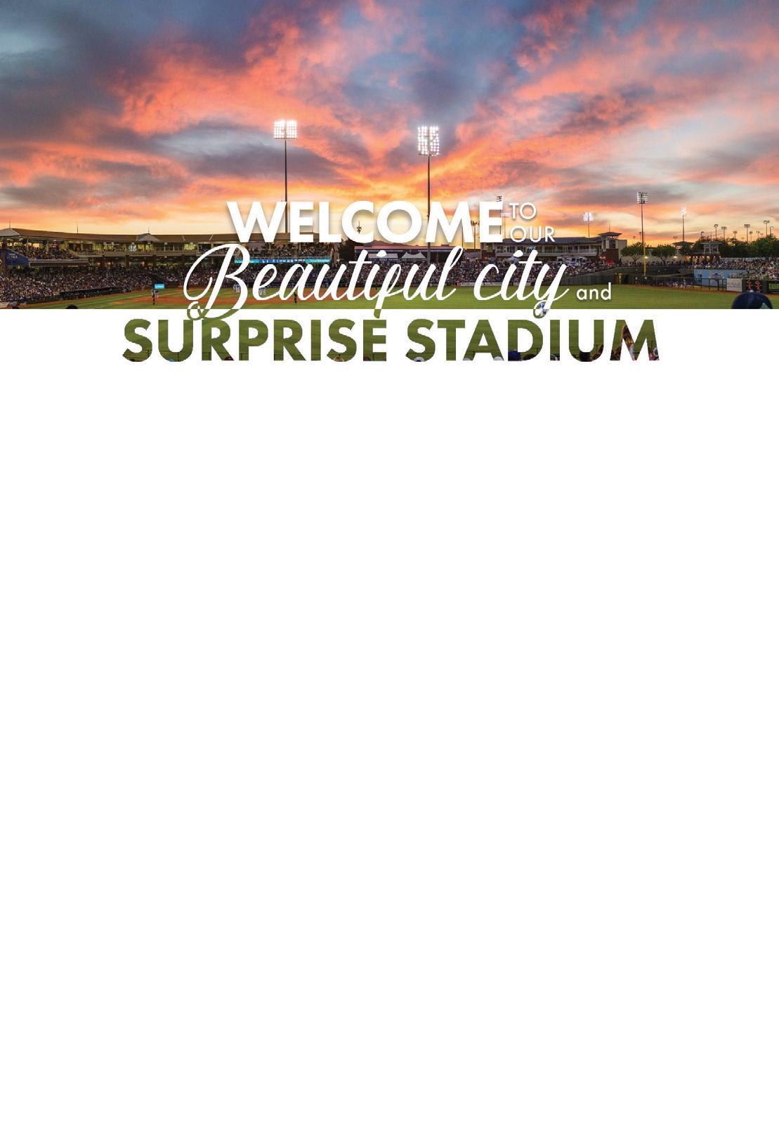 . . . . . . . . . . . . . . . . . . . . . . . . . . . . . . . . . . . . . . . . .Chairman Ron Jensen Vice Chairman Brent Bailey Member Patricia Blaisdell . . . . . . . . . . . . . . . . . . . . . . . . . . . . . . . . . . . . . . .Member Mark Brown Member Anthony Robinson Member David Kinnoin . . . . . . . . . . . . . . . . . . . . . . . . . . . . . . . . . . . . . . . . . .Member TABLE OF CONTENTS Message From The Mayor . . . . . . . . . . . . . . . .3 Cactus League Welcome Message 7 Cactus League Stadium Map . . . . . . . . . . . . .8 Cactus League Schedule 10 Spring Training Schedule . . . . . . . . . . . . . . . .12 Stadium Seating Map 13 Rules And Regulations . . . . . . . . . . . . . . . . . .14 Rangers Manager Profile 17 Rangers Profiles . . . . . . . . . . . . . . . . . . . . . . .20 Rangers Roster 24 Rangers Season Schedule . . . . . . . . . . . . . .31 Royals Manager Profile 35 Royals Profiles . . . . . . . . . . . . . . . . . . . . . . . .38 Royals Roster 42 Royals Season Schedule . . . . . . . . . . . . . . . .45