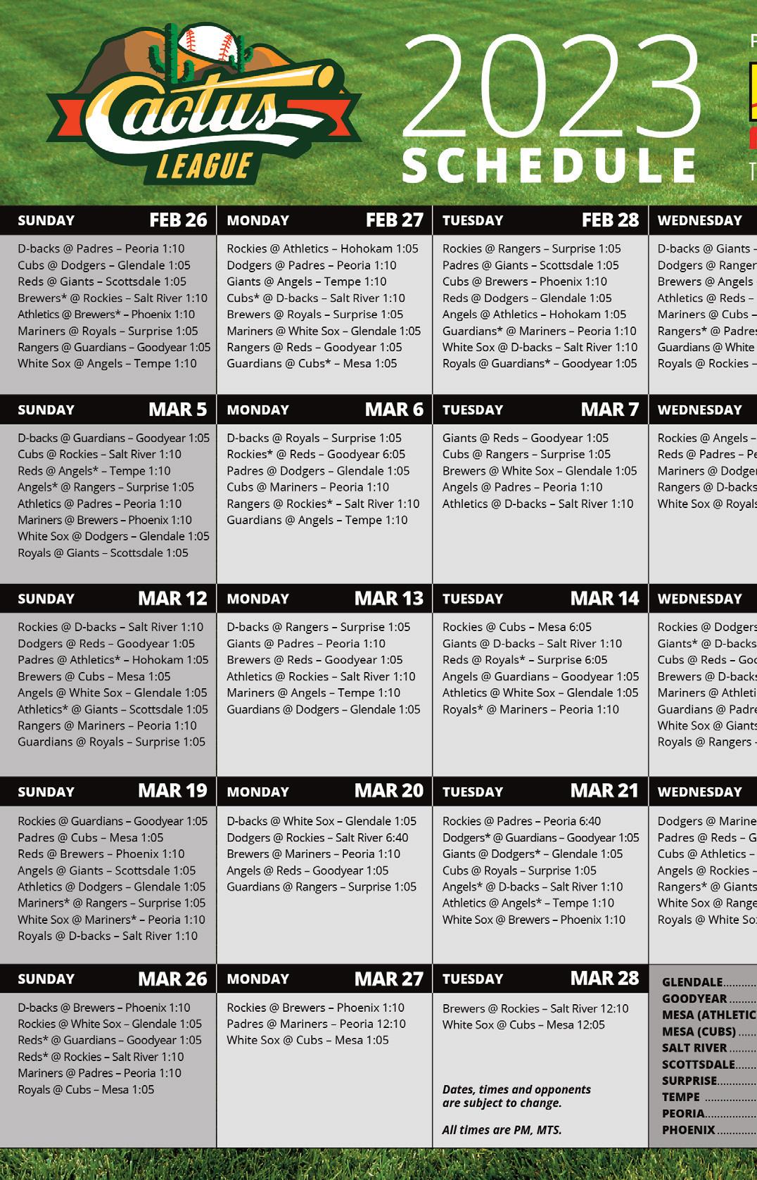 t is my pleasure to welcome you to Arizona for the 2023 Cactus League season.