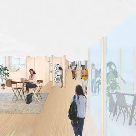 Inhabiting walls, is a way to keep the space flexible and create different spaces with multiple shades of community areas as well as individual. The design is inspired by multiple research done by looking different sources, such as Dogma “Living and Working”, where in some of their proposal they use the depth of the walls to allocate services - looking at housing almost as an infrastructure -community spaces such as hostel and campuses, for example the Trinity College, in Cambridge, England.