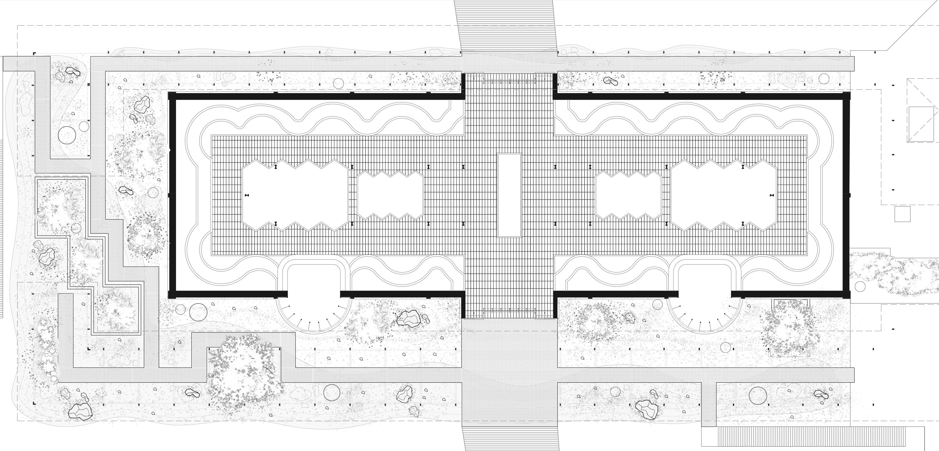 - La construcción de una cubierta ligera y perimetral que articula, a través del espacio abierto, corredores y jardines así como las atmósferas y actividades que se llevarán a cabo en el Jardín botánico y en el Pabellón Naturaleza y Cultura.