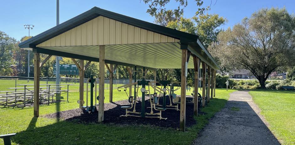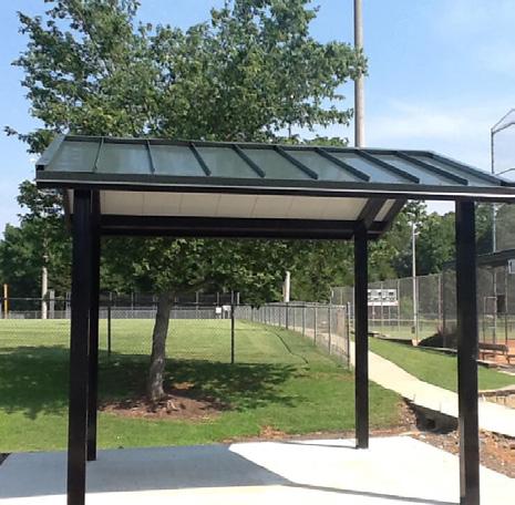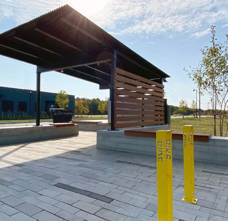 a The existing Park Building is a valued community space that hosts public events throughout the year. During the site visit performed as part of this masterplan, it was noted that the existing entrance does not comply with current ADA standards. For this reason, improvements are being proposed to address access to the building. In the process of reorganizing the parking lot, space is created to redesign the building entrance in a way that complies with ADA requirements. When this occurs, a covered entrance can be created. This helps to protect users from the elements when gathering outside of the building. At the same time, planting beds are created in front of the building. Not only does this beautify the space, but it can also serve as a memorial garden for the existing dedication stone for Shirley Dianne Hicks.