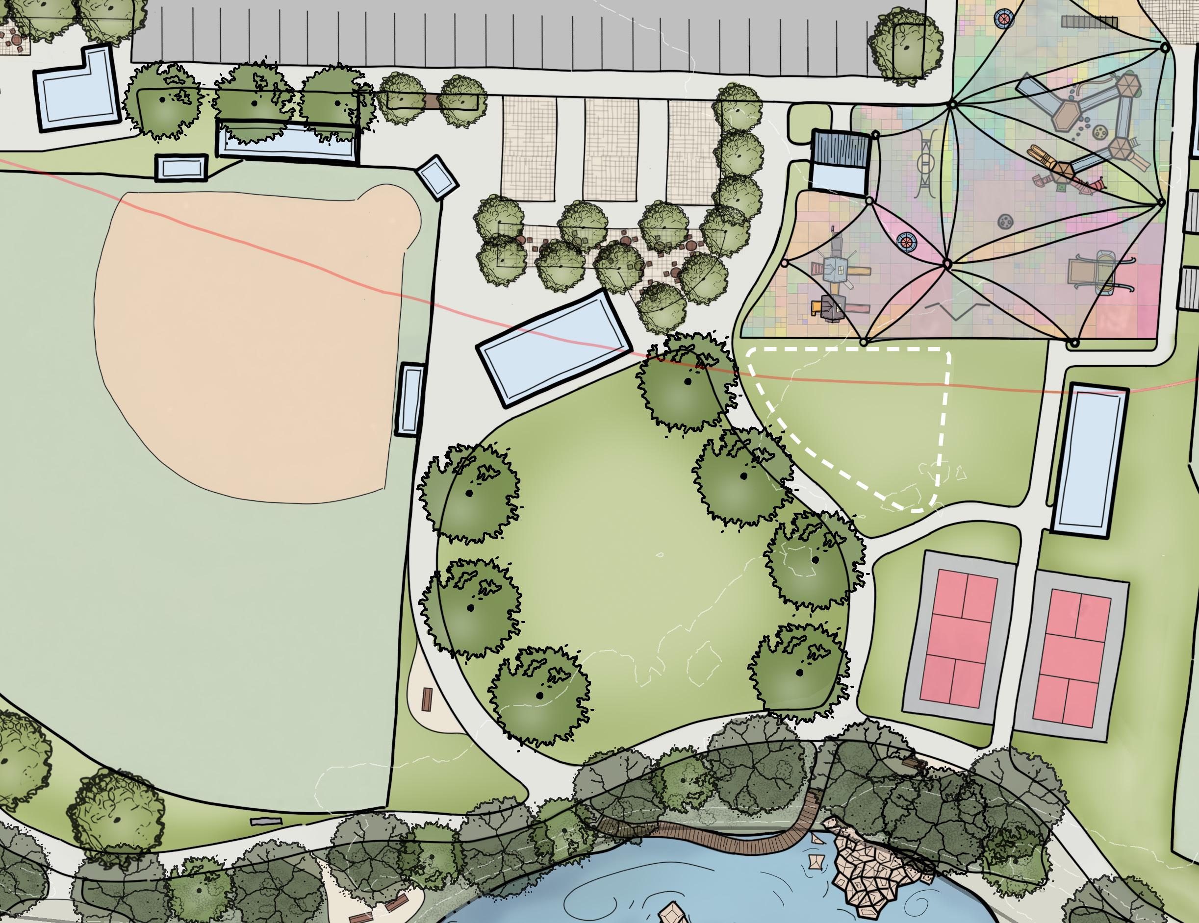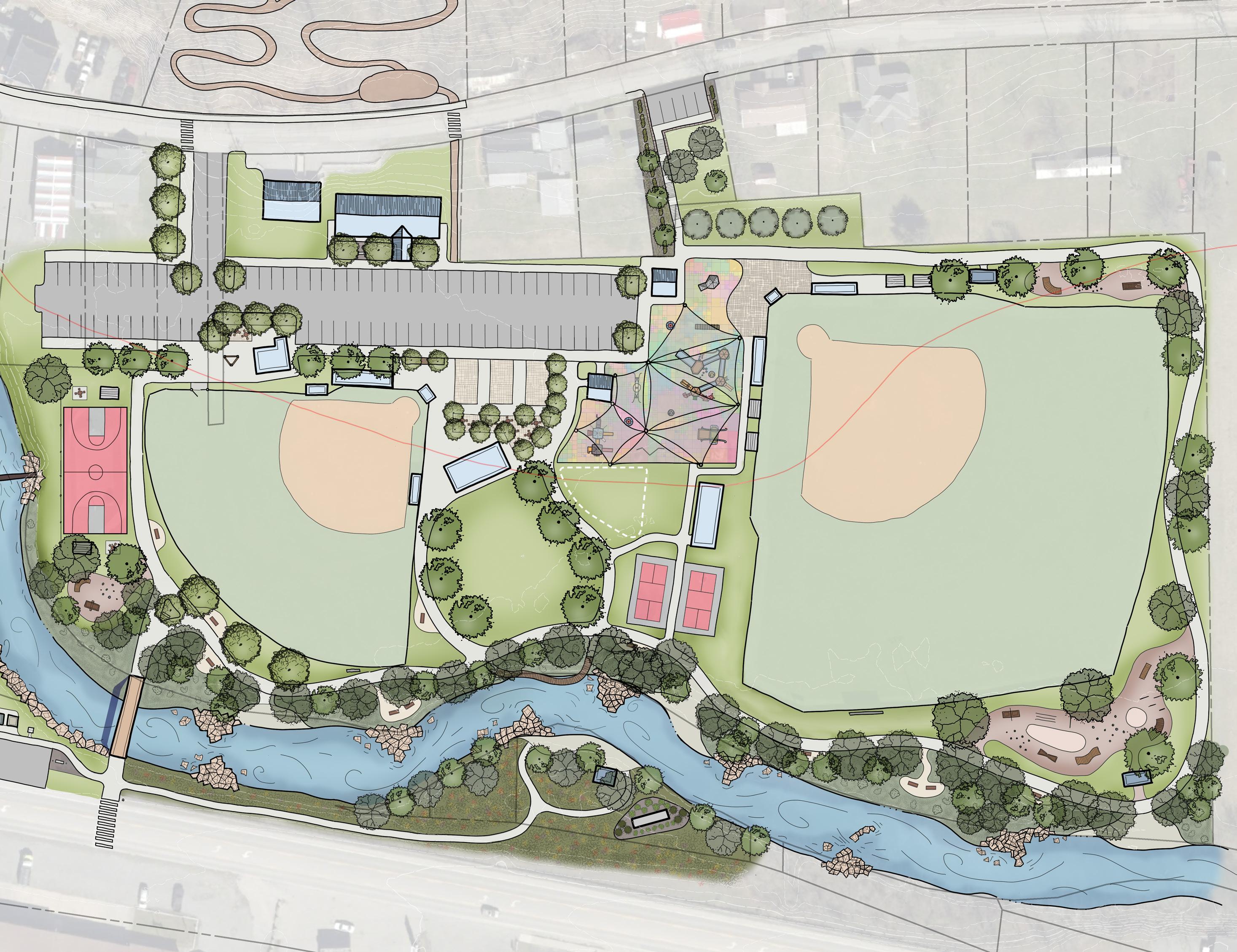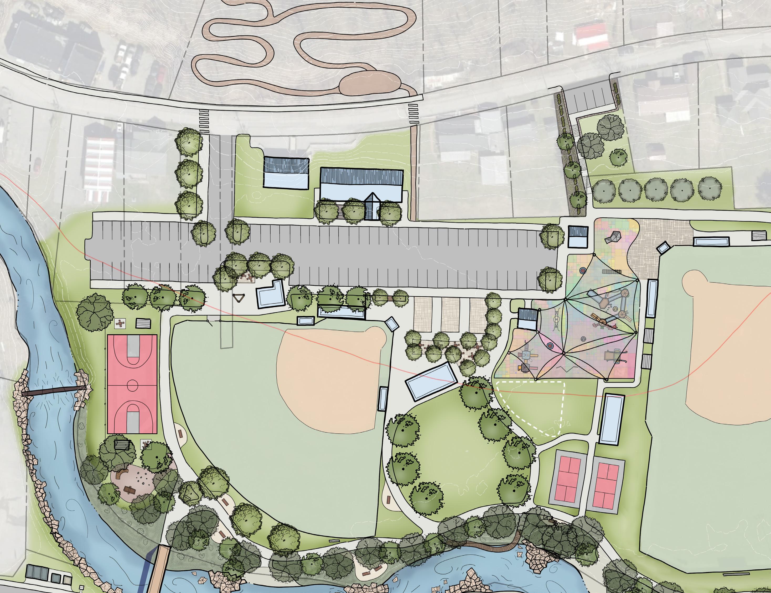 The remainder of this document will explain each section of the masterplan in greater detail and review proposed recommendations that are pictured right. When applicable, example photos will be shown to communicate design intent. Refer back to this page when looking to see how each element fits into the larger park context.
