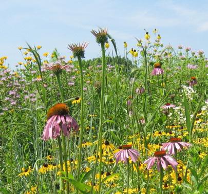 Native wildflower plantings, shown left, add value to the landscape and attract local wildlife and pollinators that visitors may have a chance to experience.