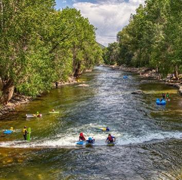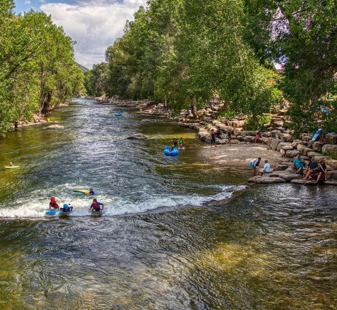 guests and nature closer together. Opportunities are being provided that allow park guests to float along the length of Hackers Creek in the park. The masterplan has also identified locations up stream where put ins can be created, forming options for 1/2 day or full day Hackers Creek floats that start outside of town on and end in the Town Park. See the graphic on the right page for additional information. The intersection of Lifes Run Road and Hackers Creek Road provides a trail head and put in opportunity on Hackers Creek. It creates an approximate 3.2 mile, full day float to the Jane Lew Park. Other options exist in Jane Lew’s Industrial Park to create a half day float to the Town Park. Property along Display Drive, where the Mountain State Log Homes is located, has been identified as an option. Please note, these are only proposed ideas and will require additional coordination and studies between the town and private land owners before such an amenity can be created.