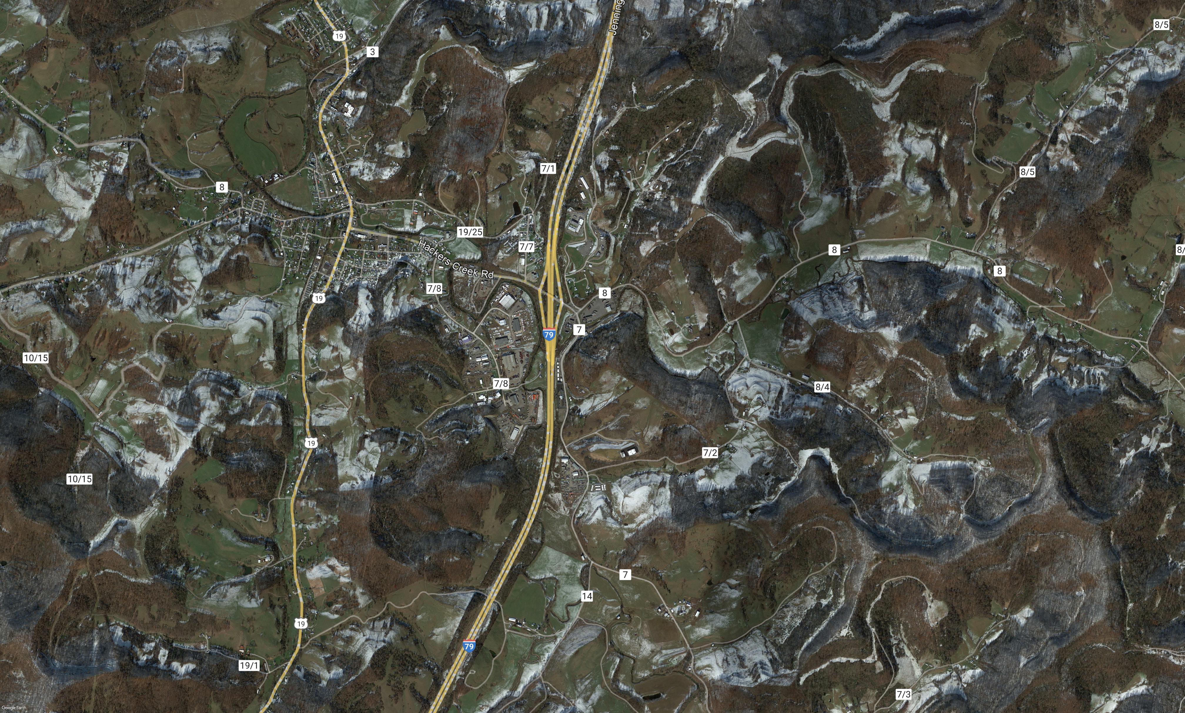 A final recommendation for this area is the addition of a Jane Lew monument sign along Hackers Creek Road. A main entrance route into town from Interstate 79, the park marks the start of town limits. A driver’s first view at they enter town from this direction is this area of property, which reveals itself as you pass by a grouping of trees along the road just before this location. At the moment, there is little to signify that drivers are entering the town. A monument sign would help create this ‘grand entrance’ into town and advertise that drivers have reached Jane Lew. The sign would need to be tall, as it would sit several feet below the road. Foundational planting around the sign, combined with the proposed wildflower meadow, would help create a great first impression.
