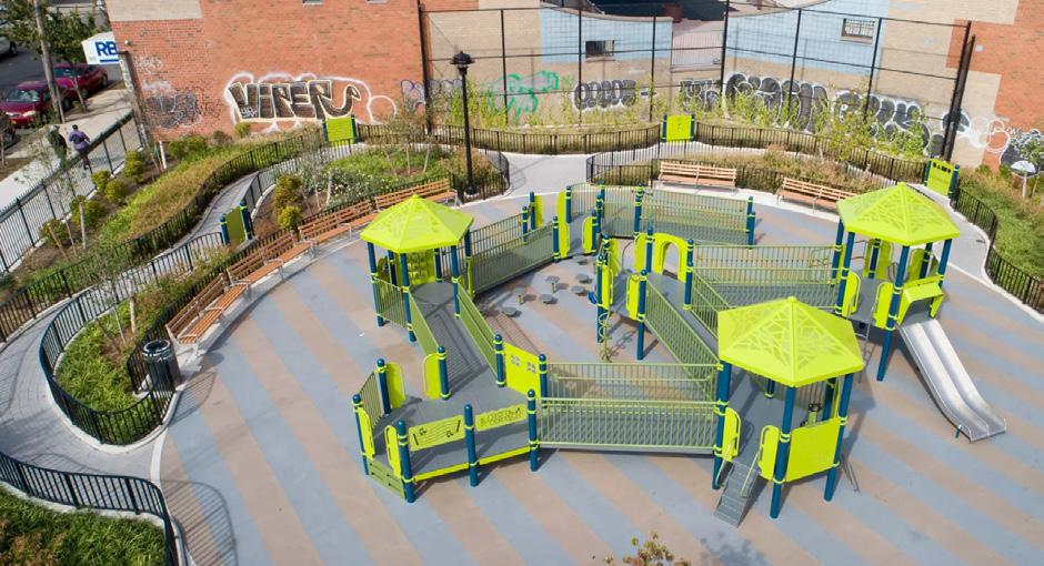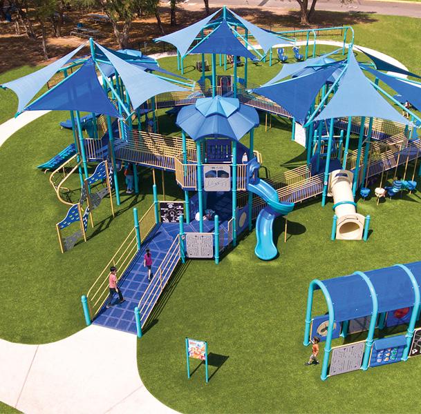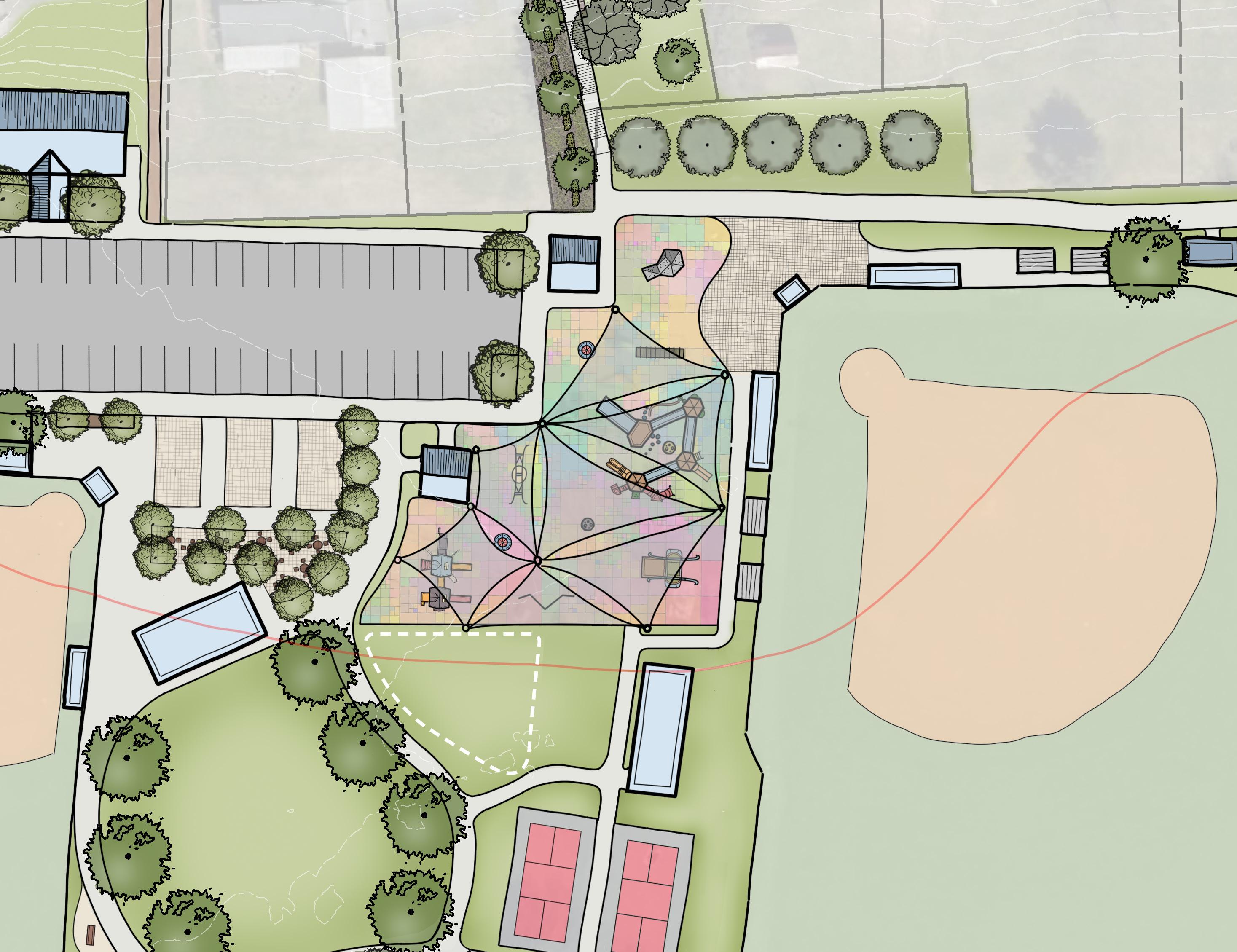 Proposed New Playground (Enhanced with new, ADA accessible, all inclusive play equipment, bouldering feature, PIP surfacing, and shade sails)