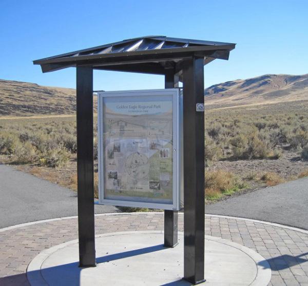 During the reorganization of the parking lot, an opportunity is given to create an entrance plaza adjacent to the restroom facility. The creation of this threshold into the park provides a transitional space where visitors can become oriented to the park. This can be accomplished through the implementation of signage and information kiosks at this location. Maps can be installed to not only communicate what all the park has to offer, but also introduce visitors to regional attractions worth checking out. It also serves as a waiting or gathering space for users. Shaded seating provides a central and easily identifiable place for visitors to wait, such as to meet up with other members of their party or to simply observe their surroundings. It also can serve as a waiting area for the adjacent restroom. This plaza
