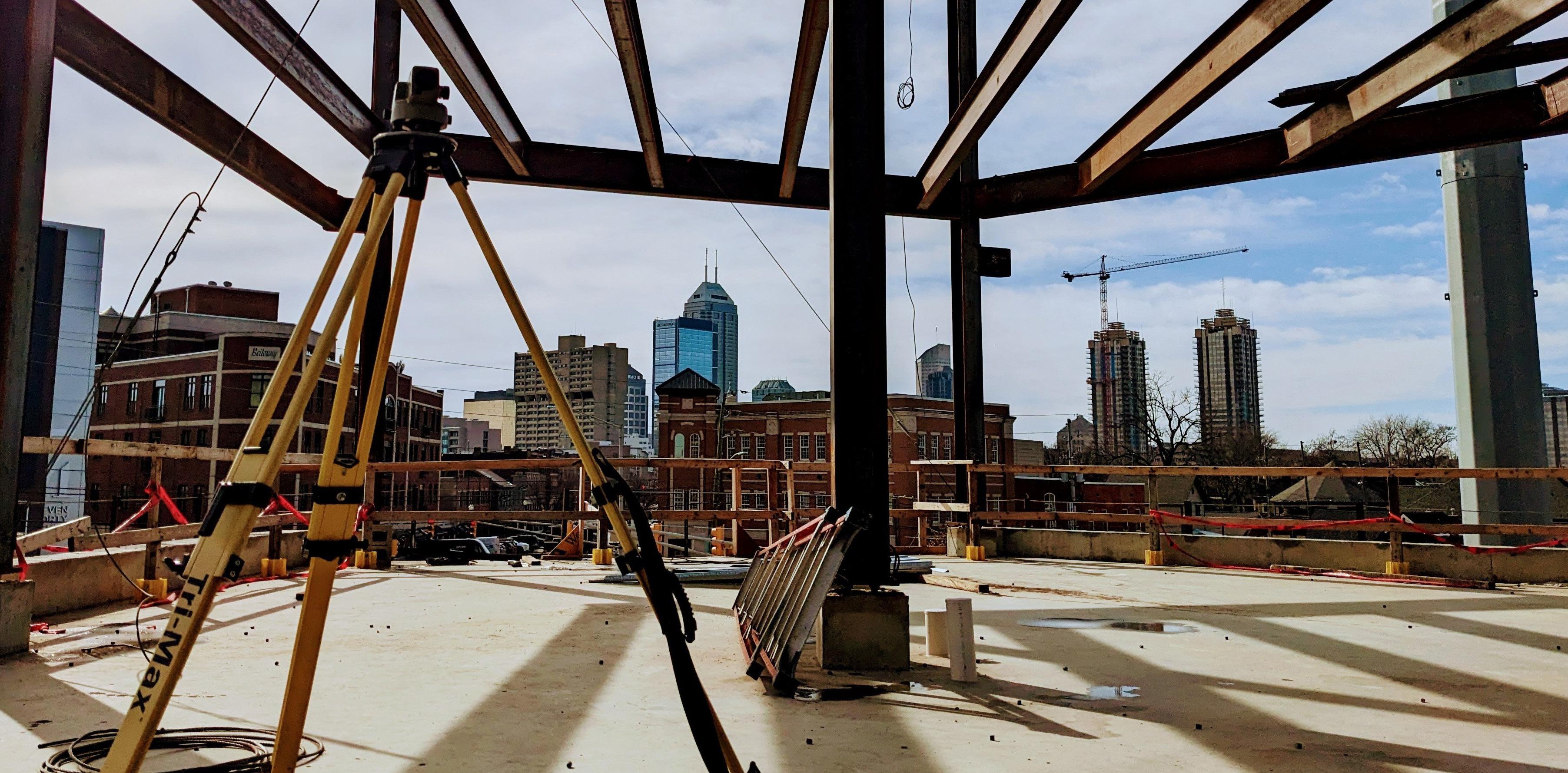 The photo was taken in Indianapolis, Indiana, where Ellie was completing survey work for new construction in the Bottleworks District.