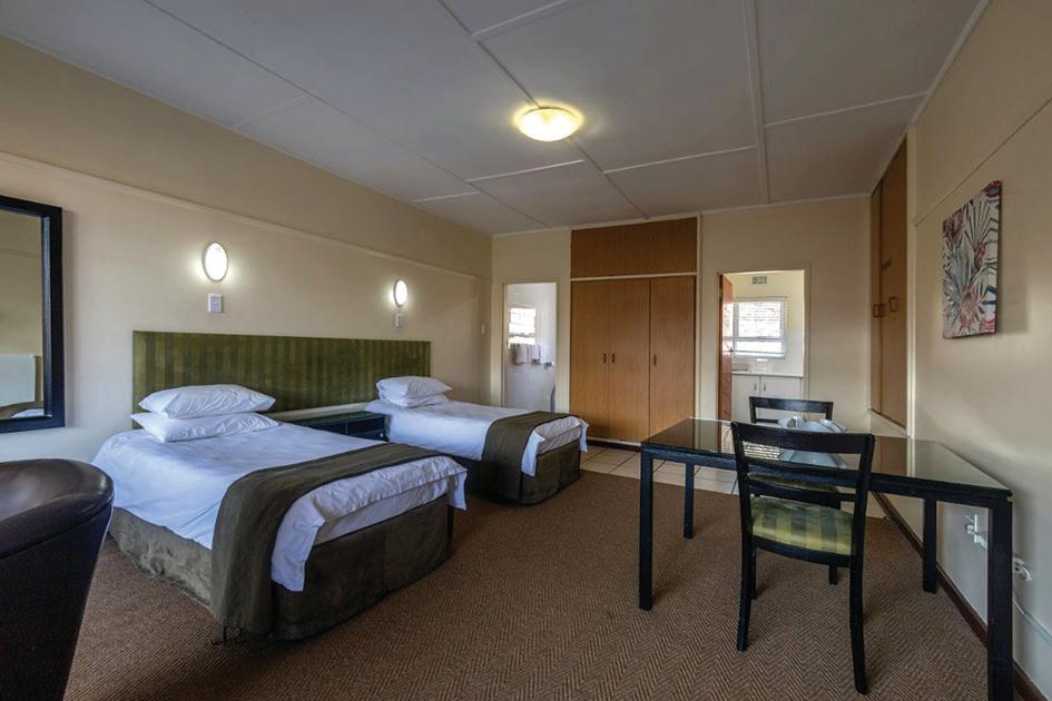 Each Self-catering unit is fully equipped, including bedding and towels, and serviced regularly. Each unit comprises a lounge, bedrooms, bathroom and equipped kitchen.