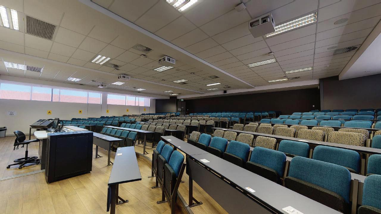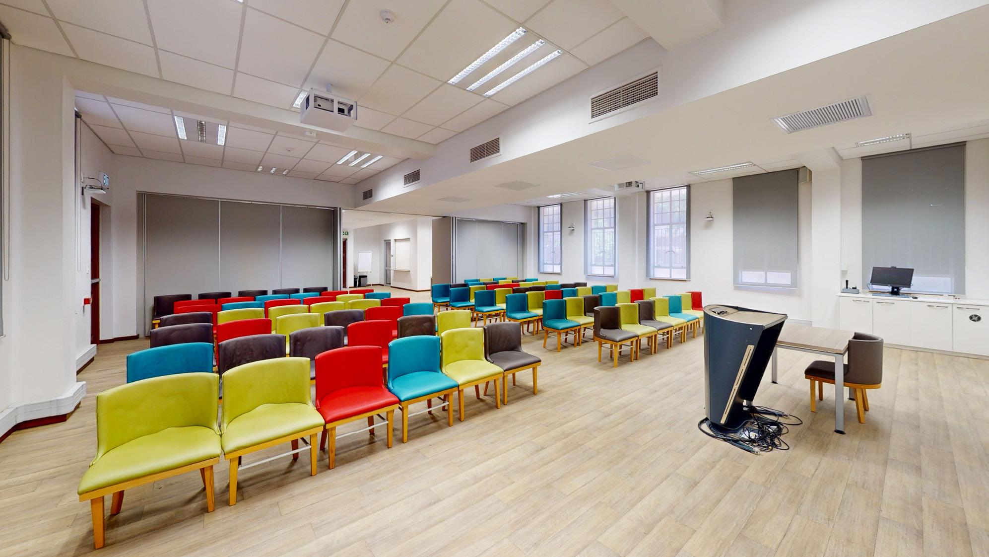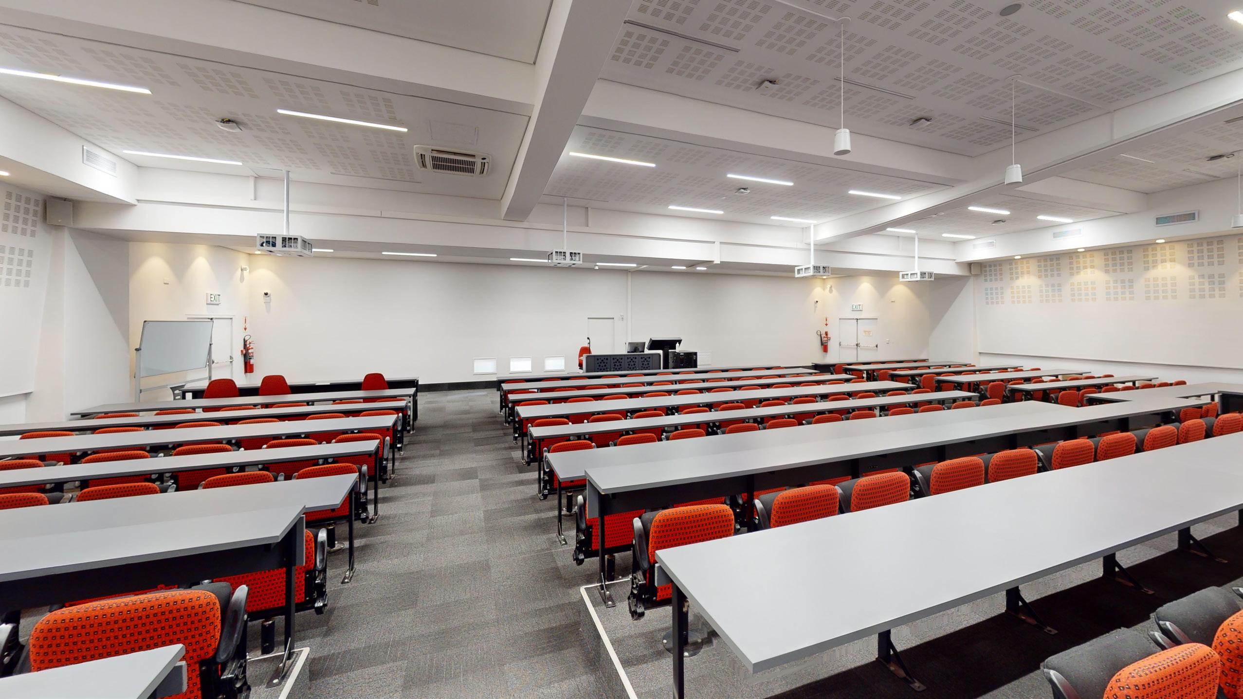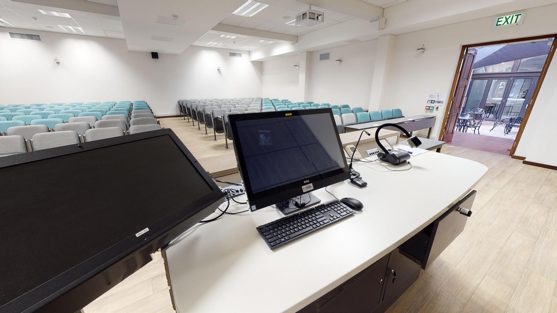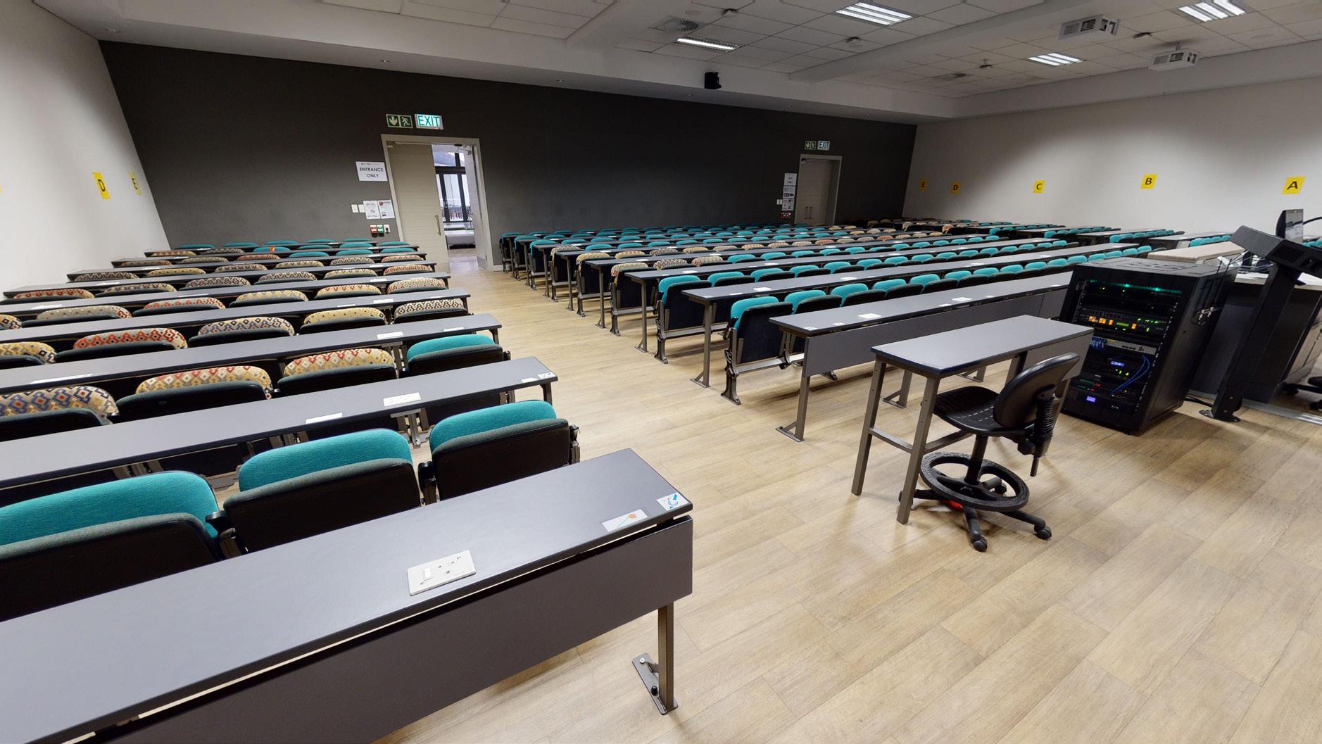 This complex is nestled in the hub of the main campus in the Neelsie Student Centre. It boasts two theatres – a 121-seater and a 98-seater – both with a projector, powerful surround sound, lighting, and luxurious seats with fold-away writing tablets.