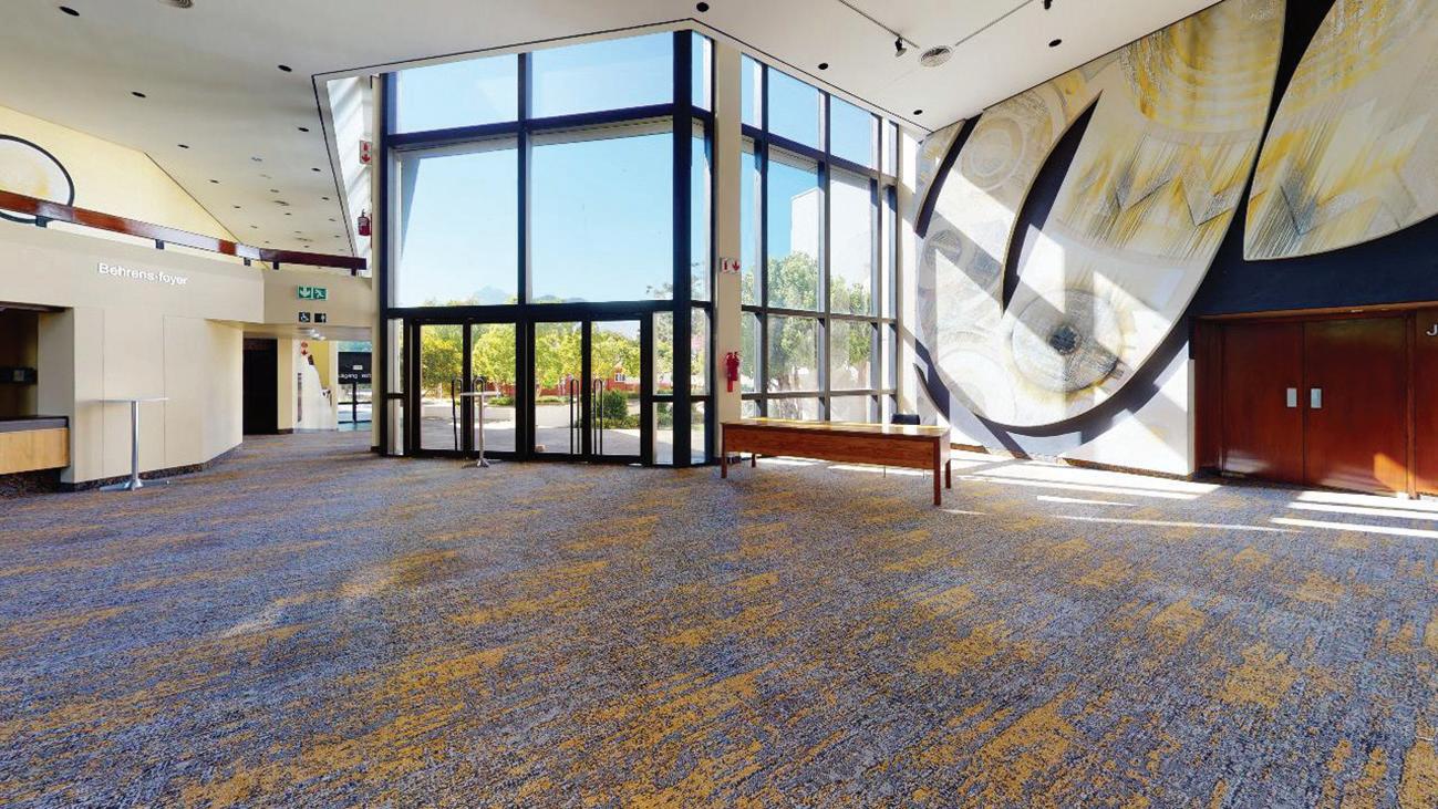 The foyer to the Endler hall boasts large murals by the late Larry Scully and has some marvellous views of the mountains surrounding Stellenbosch. The foyer can easily host up to 300 people.
