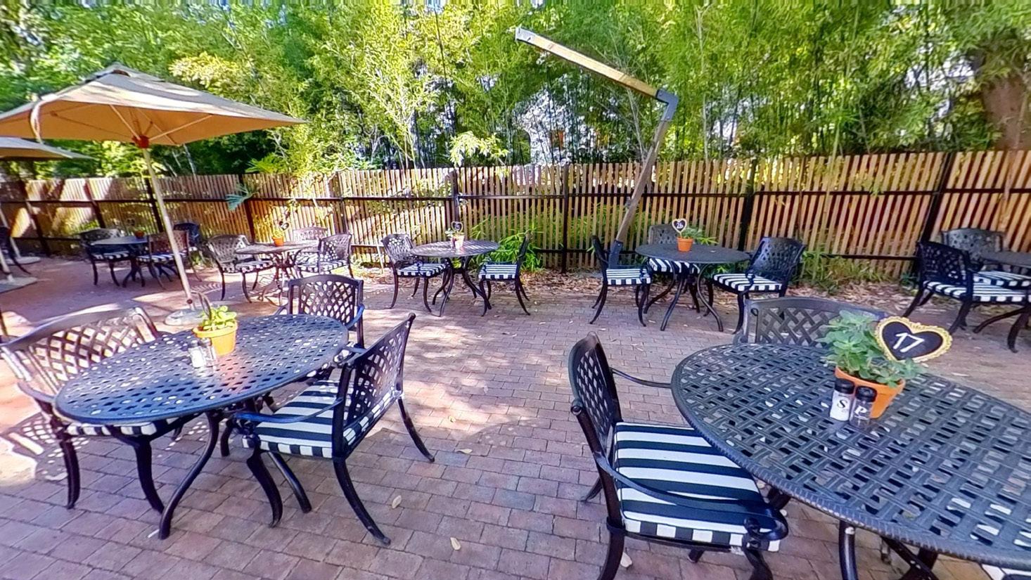 Surrounded by lush plants and natural light. A warm, inviting space, ideal for medium to large celebrations and gathering. Its the perfect outdoor setting for any celebration.