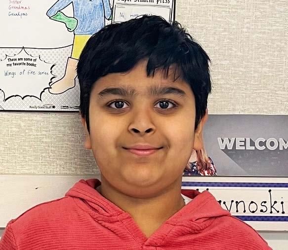 Meet N. Smith, who is in Mrs. Haynoski’s class. Smith describes himself as a Mighty Mathematician, Ravenous Reader, Awesome Athlete, and Amazing Artist. His theme song is the sound of guitar strings strumming. His hero is his twin brother, O. Smith, and if he could choose sidekicks, he would pick his mom, dad, twin brother, and his dog. In his free time, Smith enjoys tinkering with the treasures in his pencil pouch and hails from the legendary Super Galaxy. If he could fix one thing in the world, it would be pollution and lawbreaking. If Smith starred in a movie, it would be an actionpacked jail escape, where he plays the heroic cop saving the day. When he’s not on duty, he enjoys talking to his friends about games and reading his favorite books—Dog Man and Diary of a Wimpy Kid.