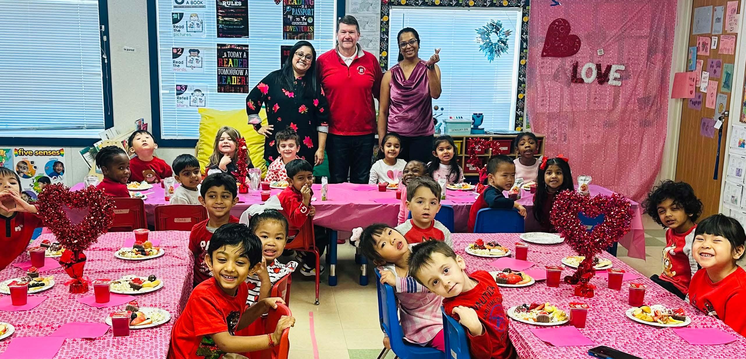 Valentine’s Day was celebrated with an abundance of love and kindness in Pre-K. Children dressed in Valentine’s colors and exchanged goodies and treats with their friends. As usual, both Pre-K classes combined to enjoy the Valentine’s party, and having Mr. Seeley join us was the icing on the cake!