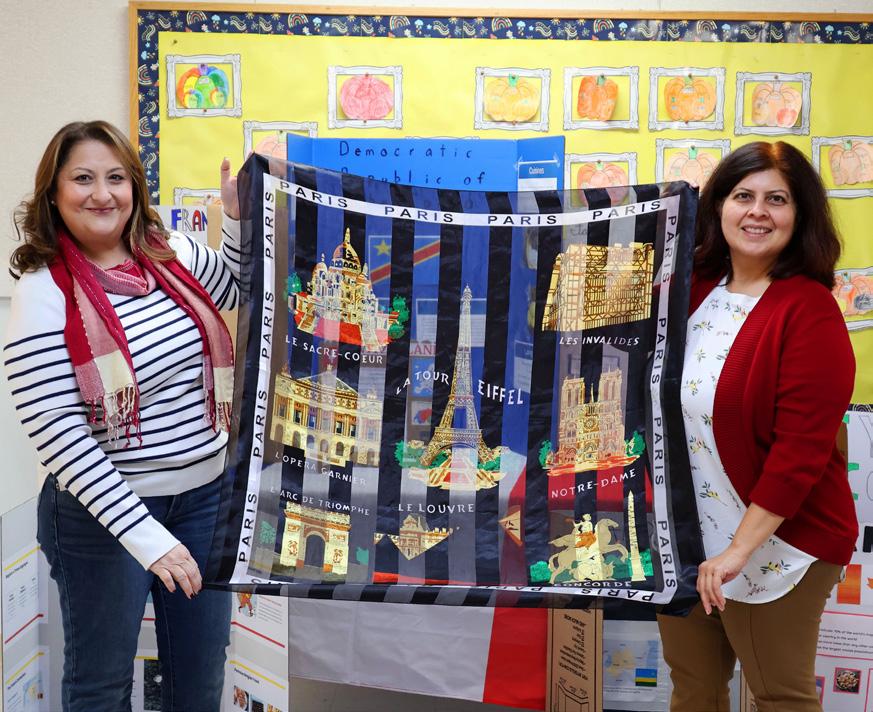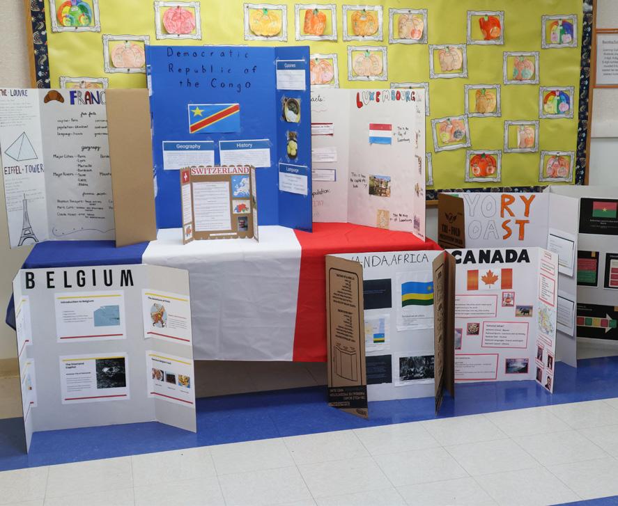 Throughout the week, students were greeted each morning in French and participated in community-building events, including a schoolwide Chicken Dance and a dressdown day featuring the colors of the French flag—red, white, and blue.