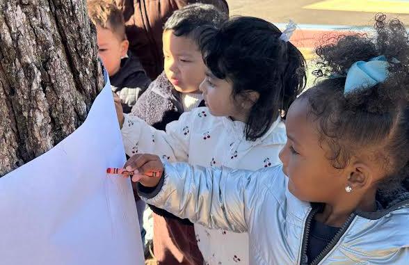 Preschoolers started their tree study! We are exploring and investigating parts of a tree, what lives in trees, what grows on trees, and what is made from trees. The children made their own binoculars to better see as they walked around campus. We started by placing large white paper on a tree. The children were given crayons to rub on the paper. They noticed that the trunk of the tree was bumpy and not smooth. Our next adventure was a scavenger hunt. The children were given a colorful sheet of things they needed to find related to trees. The children were so excited to check off the items they found! Another day, we went out on campus to collect various sizes and different colored leaves. We brought them into class and sorted them by size.