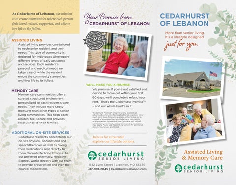 At Cedarhurst of Lebanon, our mission is to create communities where each person feels loved, valued, supported, and able to live life to the fullest.