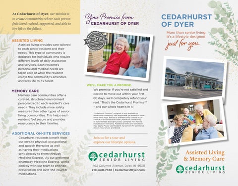 At Cedarhurst of Dyer, our mission is to create communities where each person feels loved, valued, supported, and able to live life to the fullest.