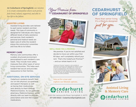 At Cedarhurst of Springfield, our mission is to create communities where each person feels loved, valued, supported, and able to live life to the fullest. Your Promis# from CEDARHURST OF SPRINGFIELD
