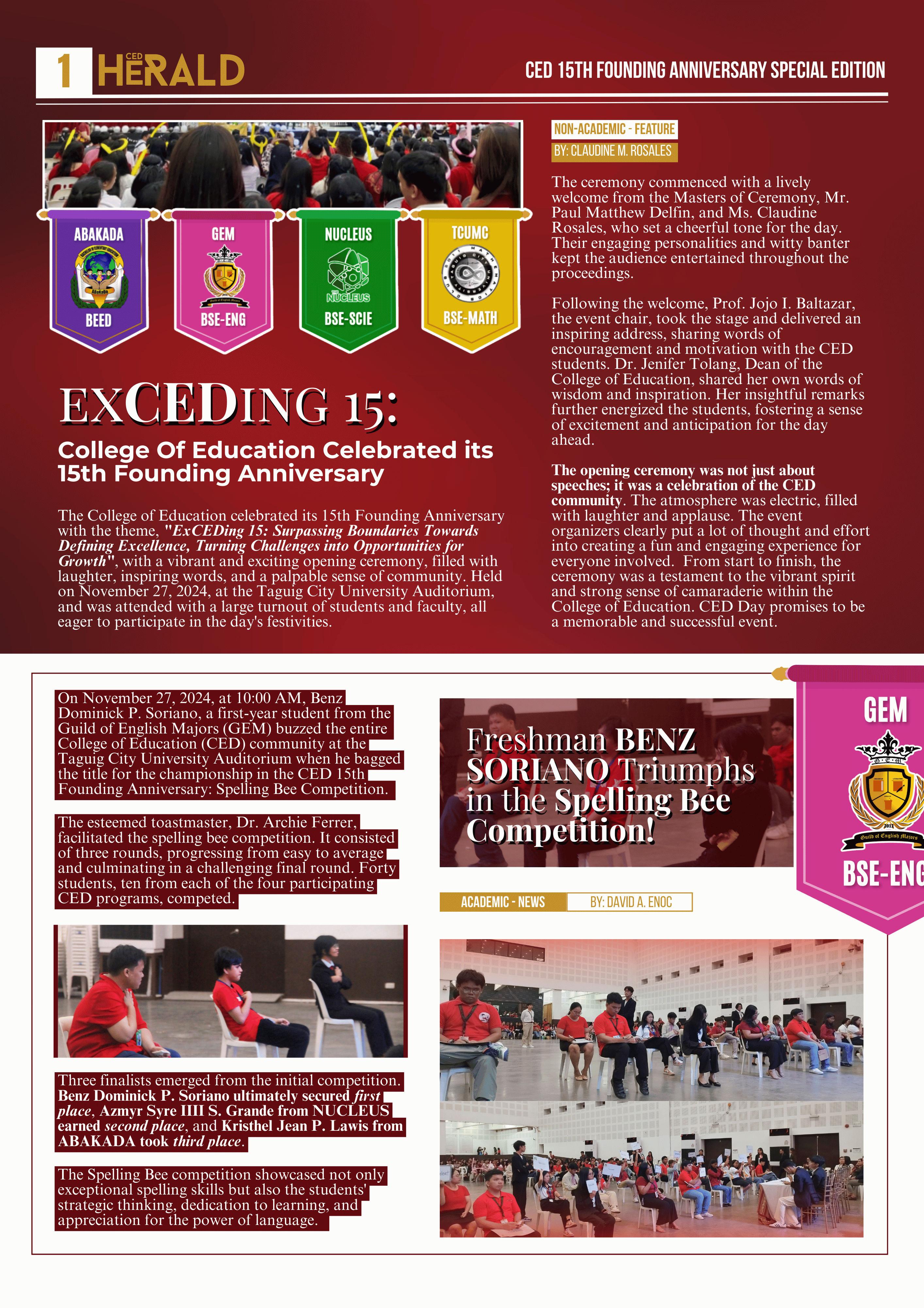 On the 27th of November, 2024, the TCU Auditorium was filled with ear-deafening cheers during the celebration of the College of Education's 15th Founding Anniversary, as the participants from the four (4) programs competed for the title of becoming the next champion of CED Idol 2024.