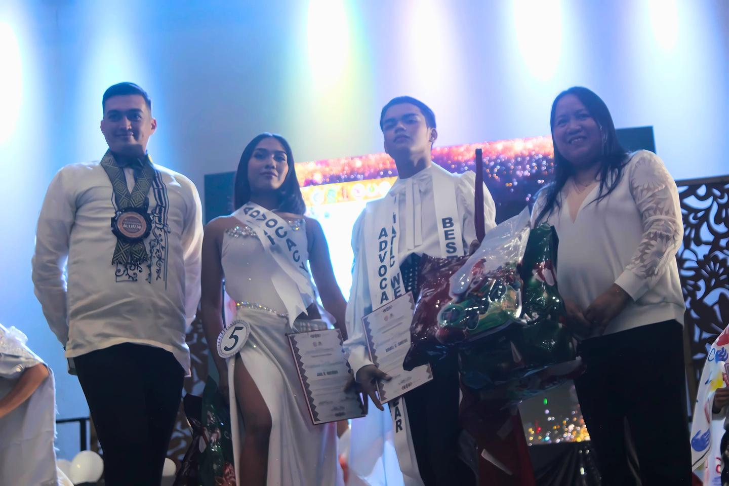 In addition, Mr. Vash Niklaus T. Bostre (GEM) and Ms. Samantha Claire T. Cagas (TCUMC) secured the place of 1st runner-up, followed by Mr. Jonathan D. Estadilla (TCUMC) and Ms. Noraine D. Abas (GEM) as 2nd runner-up, then Mr. John Lawrence V. Morales and Ms. Nicole C. Dimalaluan (ABAKADA) as 3rd runner-up.