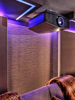 The showroom features a 7.1.2 Gold Cinema, which was installed as a turnkey offering and shows customers that you don’t have to have a traditional cinema. The integrator used different shades and materials to highlight the possibilities of a space. The team also hid all the speakers, which helps the customer focus on the solution and not the products.