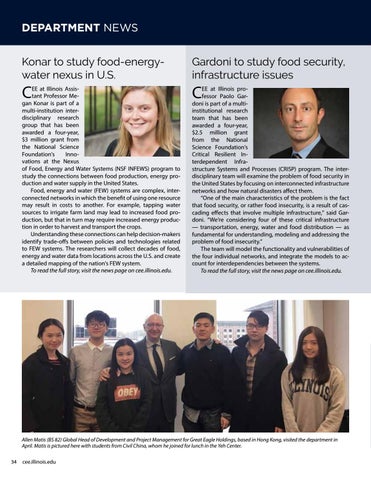 Allen Matis (BS 82) Global Head of Development and Project Management for Great Eagle Holdings, based in Hong Kong, visited the department in April. Matis is pictured here with students from Civil China, whom he joined for lunch in the Yeh Center. 34