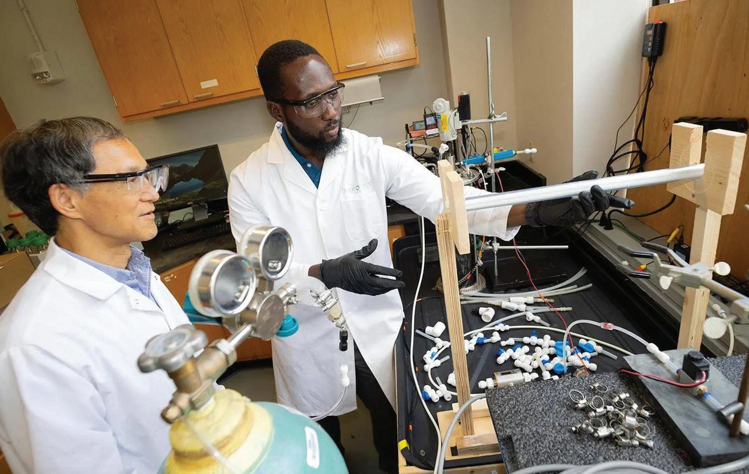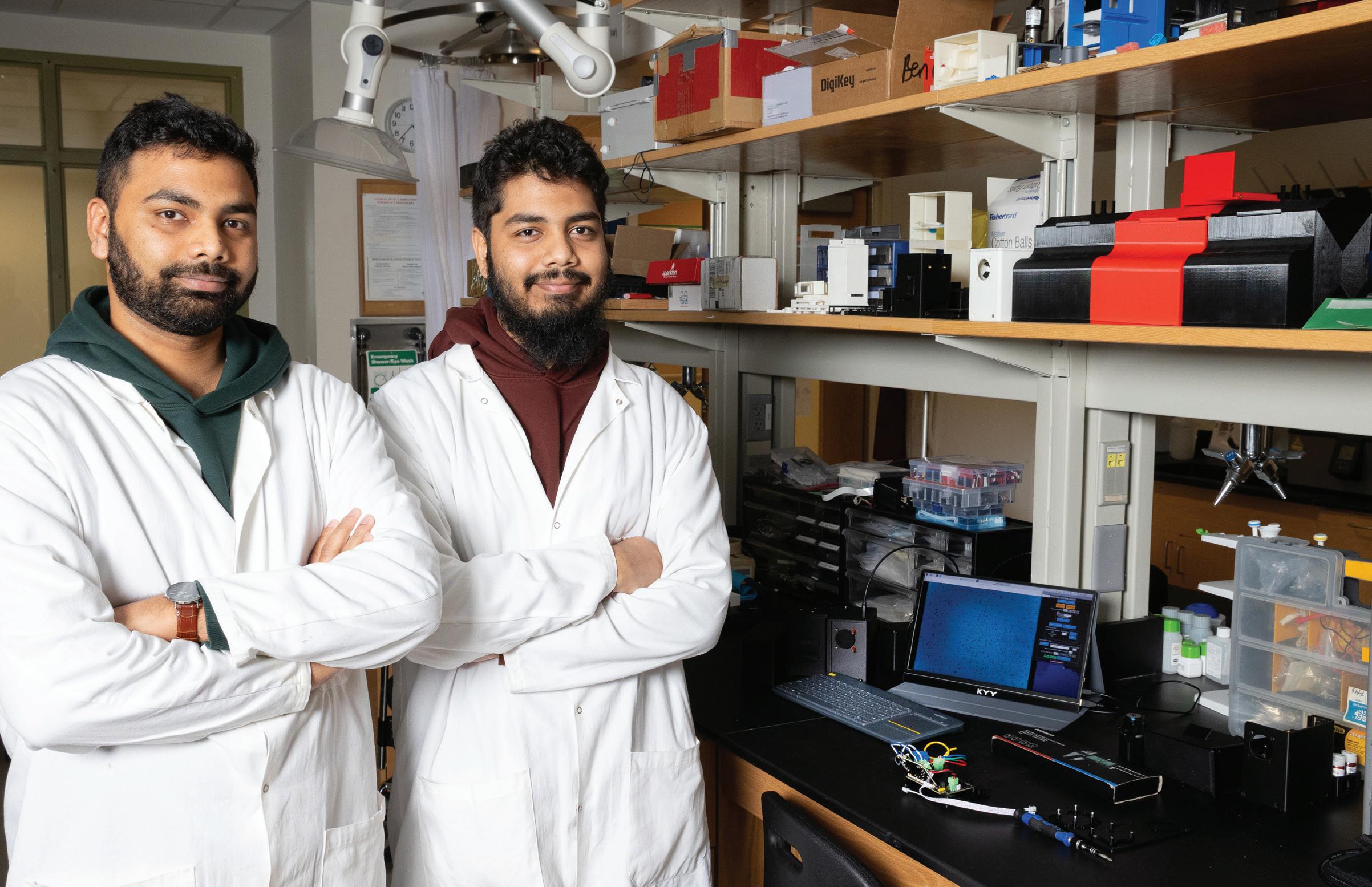 Farhan Khan (left) and Farshid Khan (right) in the lab of Associate Professor Ameet Pinto. (Photo by Candler Hobbs)