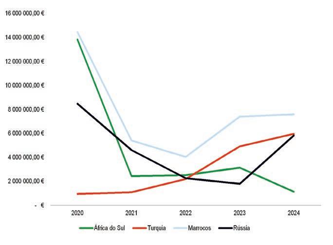 EVOLUÇÃO DAS EXPORTAÇÕES PARA ÁFRICA DO SUL, MARROCOS, TURQUIA E RÚSSIA