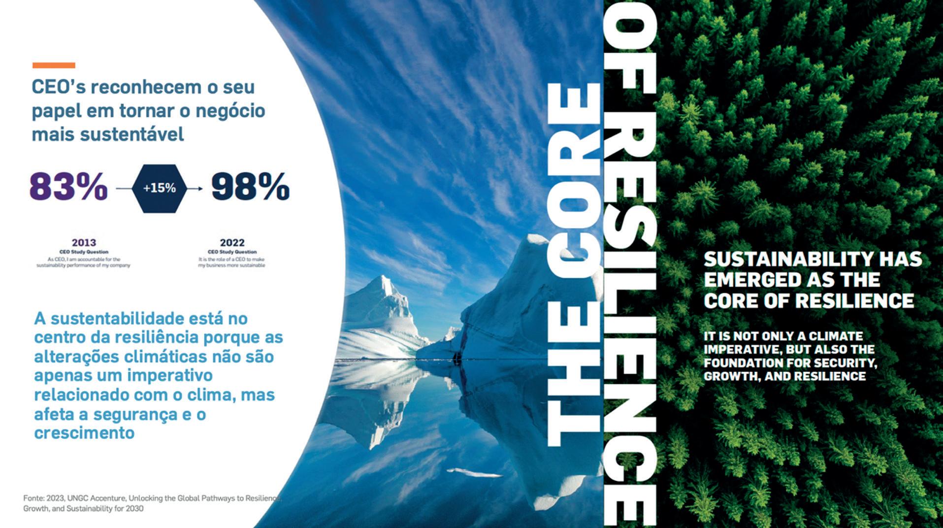 O estudo anual do UN Global Compact diz-nos que os CEO de empresas com mais de USD 1000 Milhões de Dólares de receitas anuais acreditam que a sustentabilidade será importante para o sucesso futuro dos seus negócios. Porquê? Porque apoia o crescimento da marca, as expectativas dos clientes e dos consumidores e os requisitos dos mercados, que começam a estar alinhados com a sustentabilidade, incrementa as receitas, permite mitigar riscos e reduzir custos pela eficiência dos processos operacionais e pela redução do uso de recursos.
