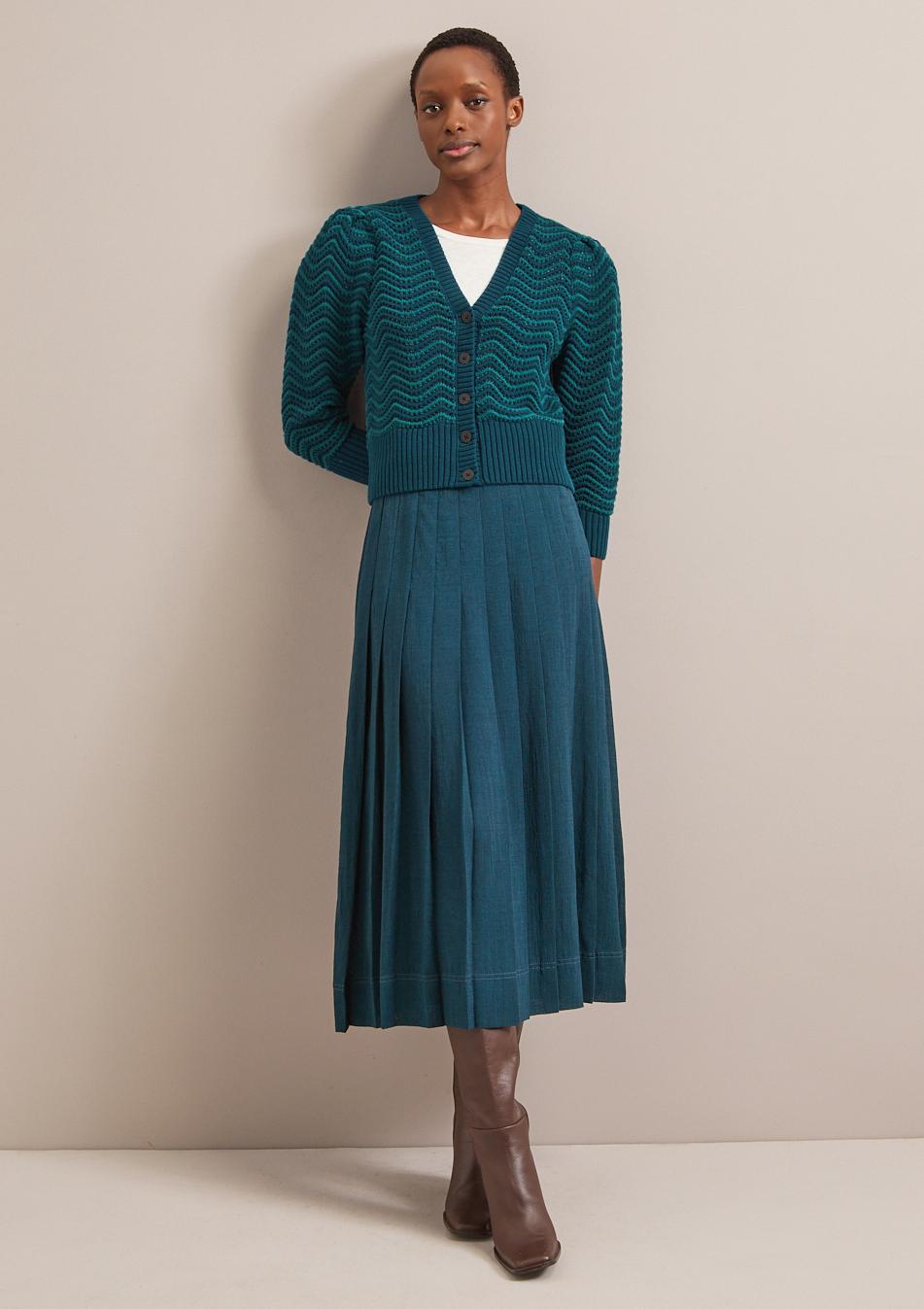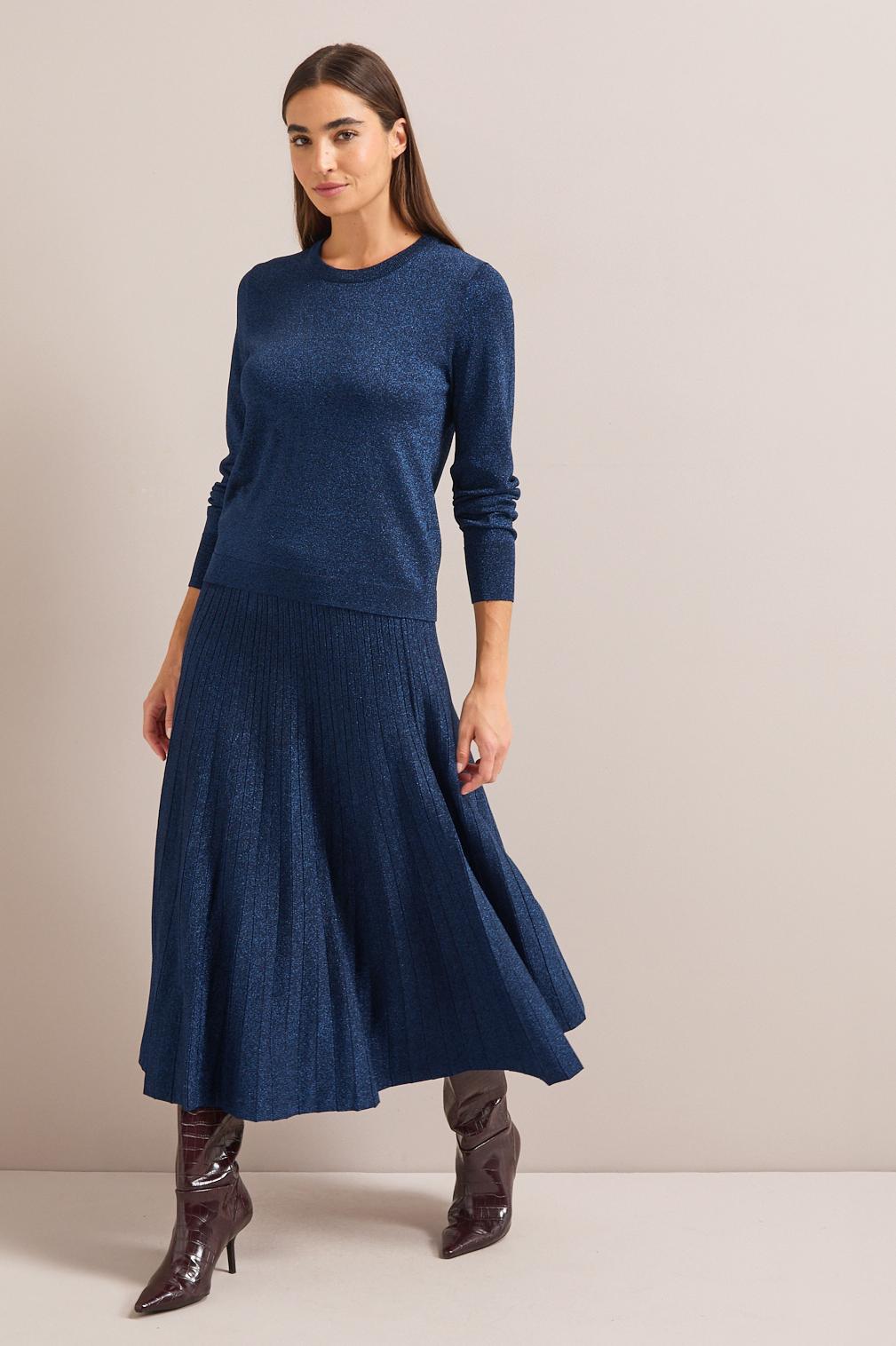 Colette Lurex Pleated Skirt Blue. Also available in Dark Gold. £220