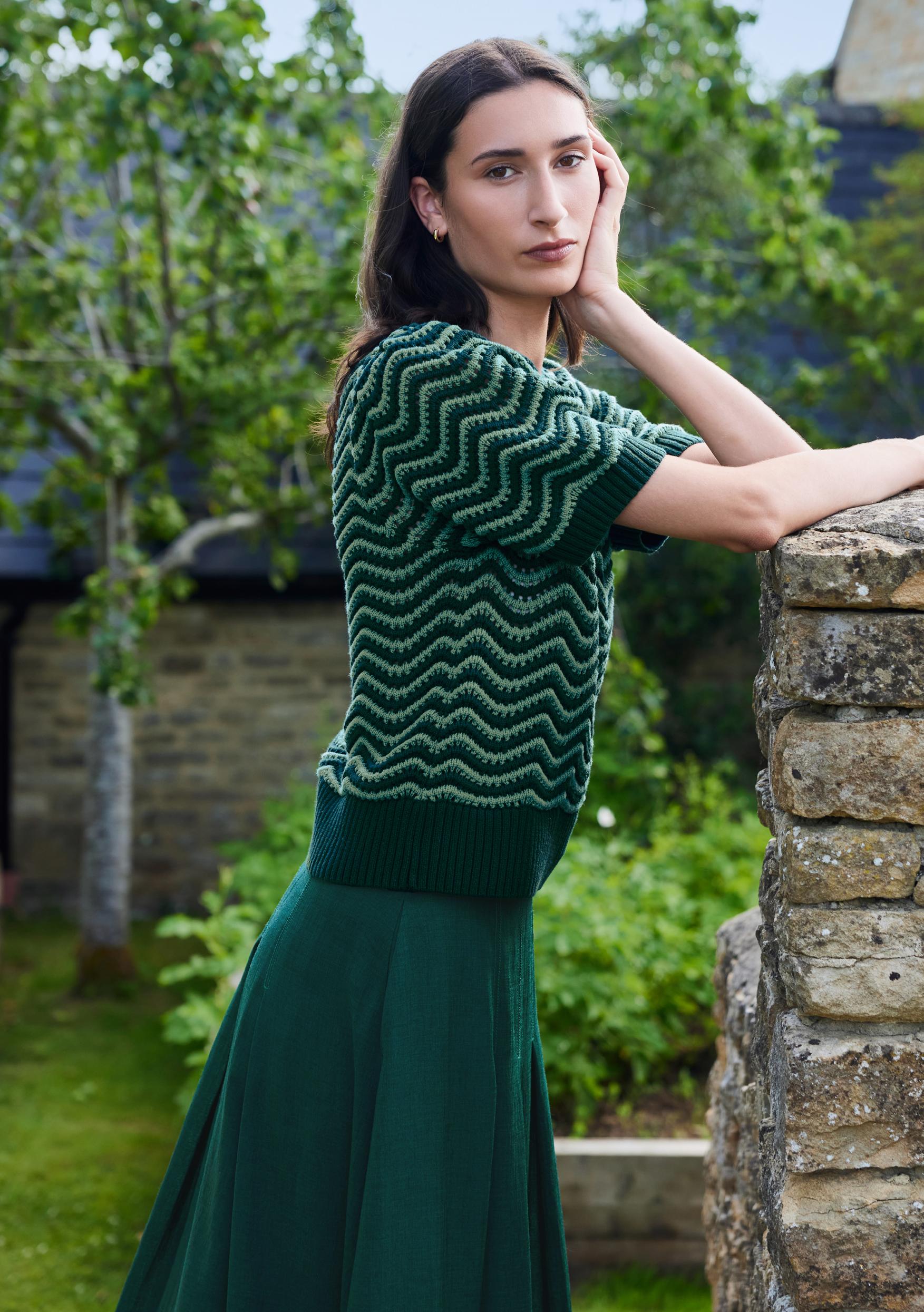 June Cotton Jumper Green Stripe. Also available in Burgundy Stripe. £150