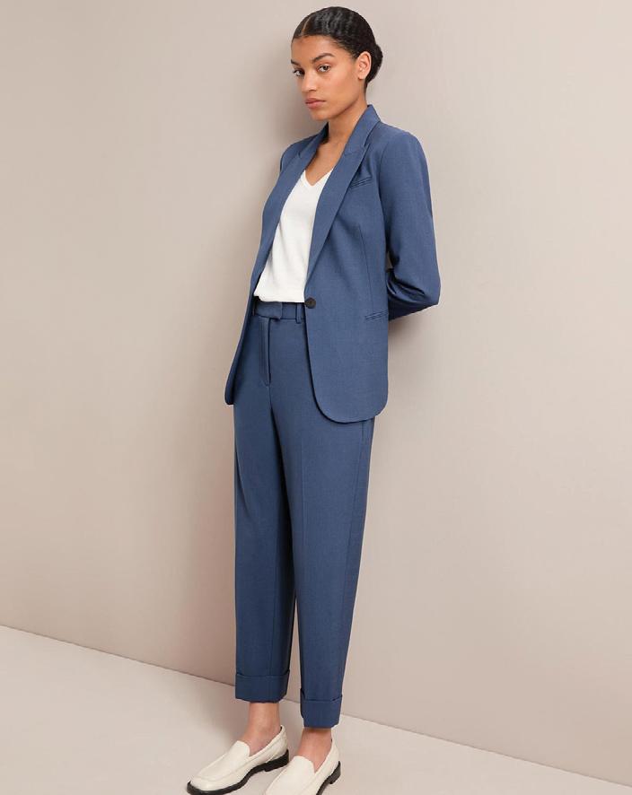 Jamie New Wool Blazer and Clement New Wool Easy Waist Trousers Slate Blue. Also available in Black, Navy and Burgundy. Blazer £340 Trousers £240