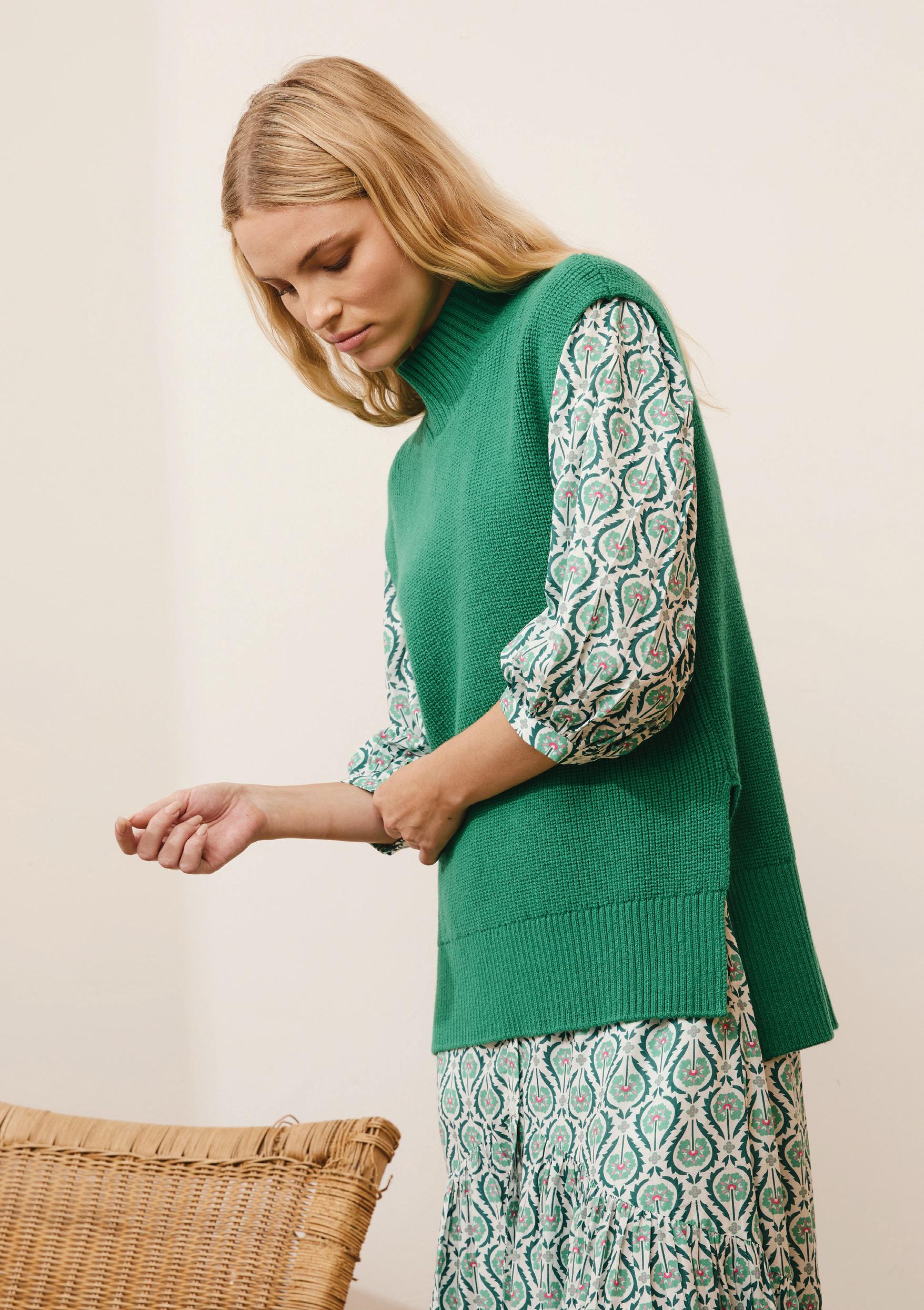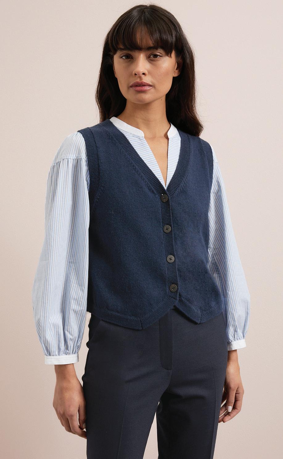 Julie Round-Neck Layering Vest in Cotton Merino Blend