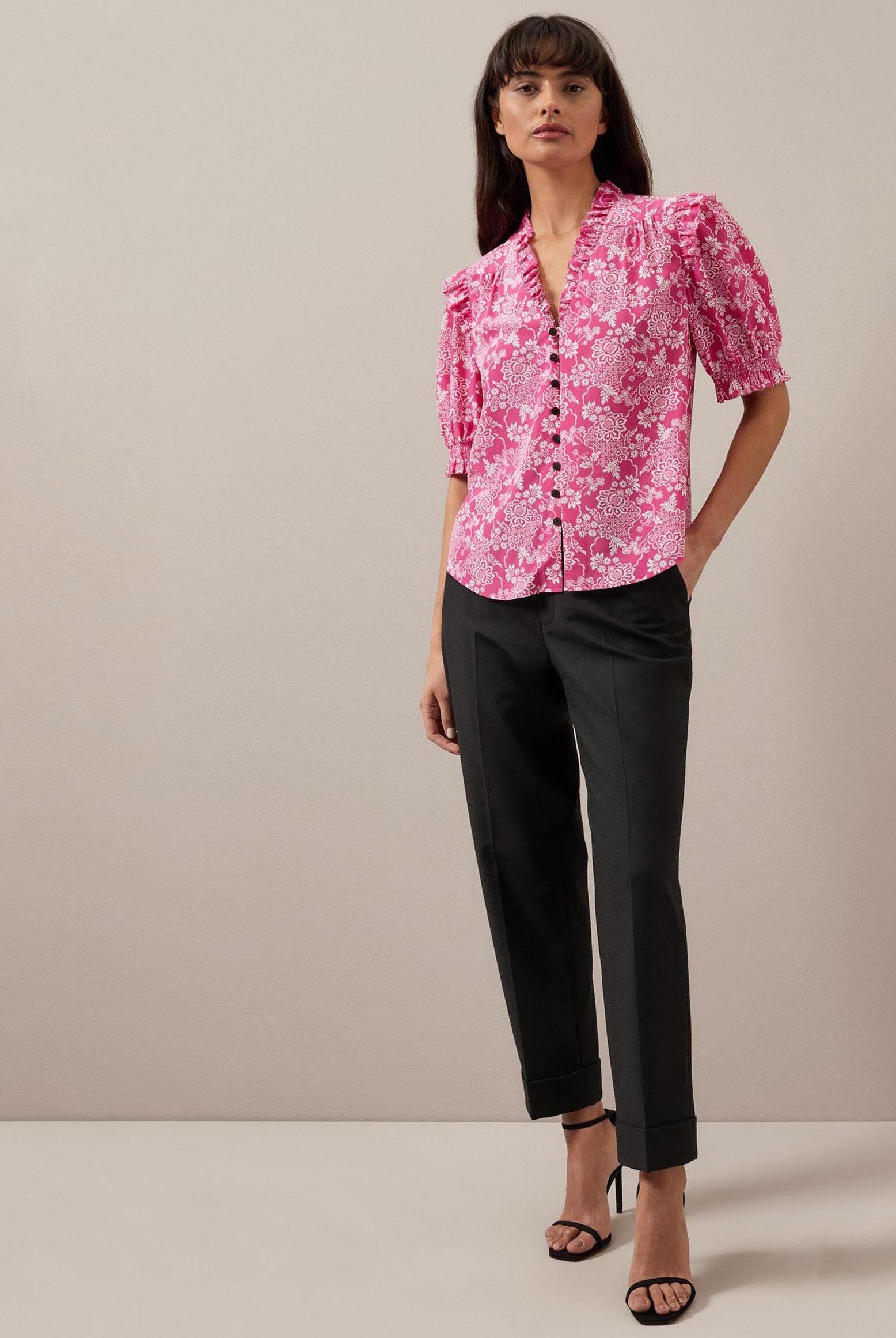 Stella Blouse in 100% Silk Crêpe de Chine Hot Pink Damask Print. Also available in Green Damask Print. £270