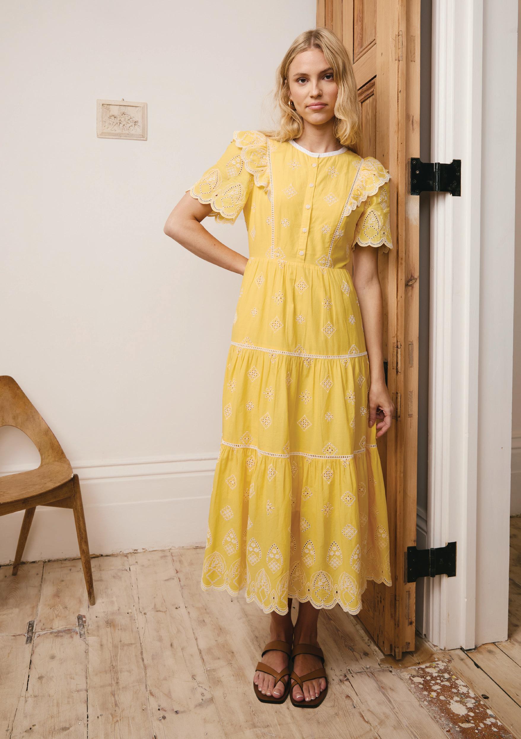 Alana Broderie Anglaise Maxi Dress Yellow/White. Machine washable. £320