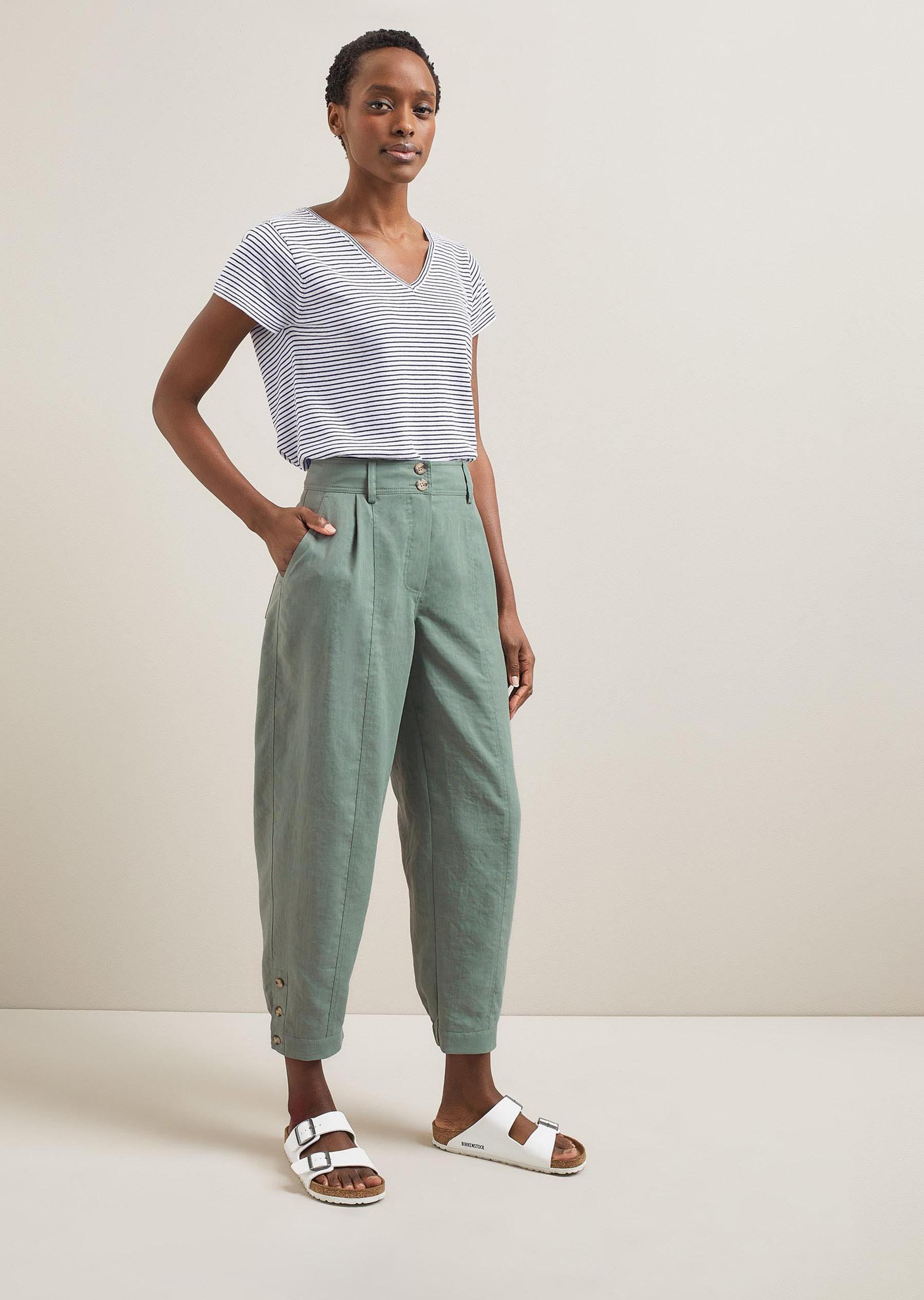 Tyson Techni Linen Tapered Trouser Sage Green. Also available in Navy and Cream. Machine washable. £260