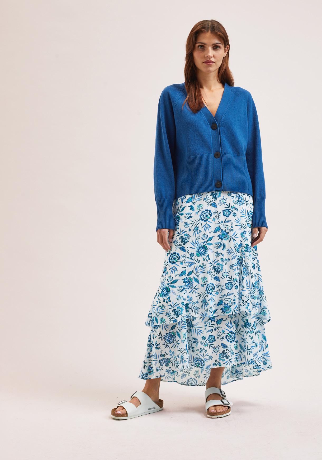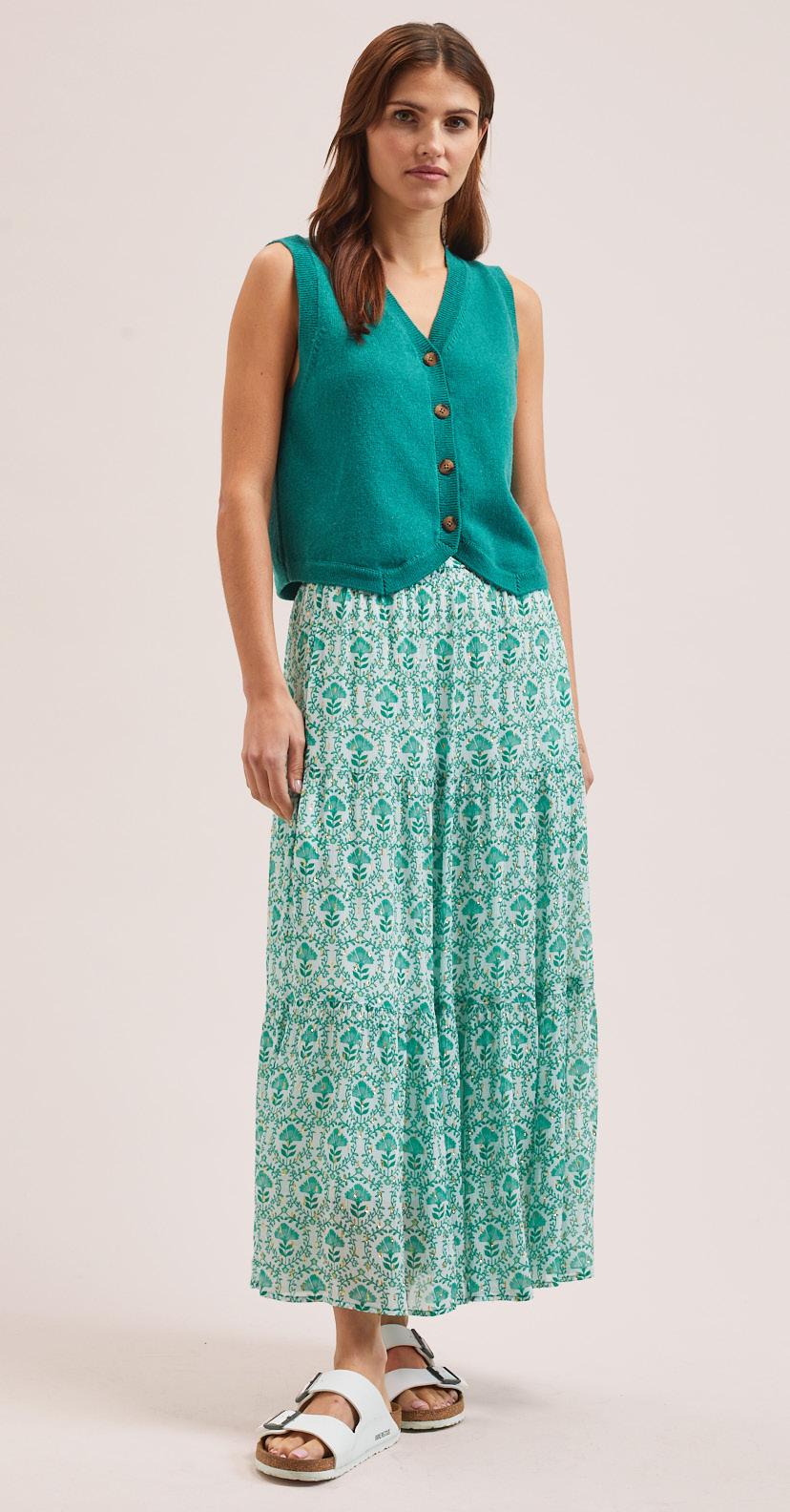 Lotta Tiered Maxi Skirt in Cotton Viscose Georgette White/Blue Palm Floral Print or Green/White Palm Floral Print (opposite). £220