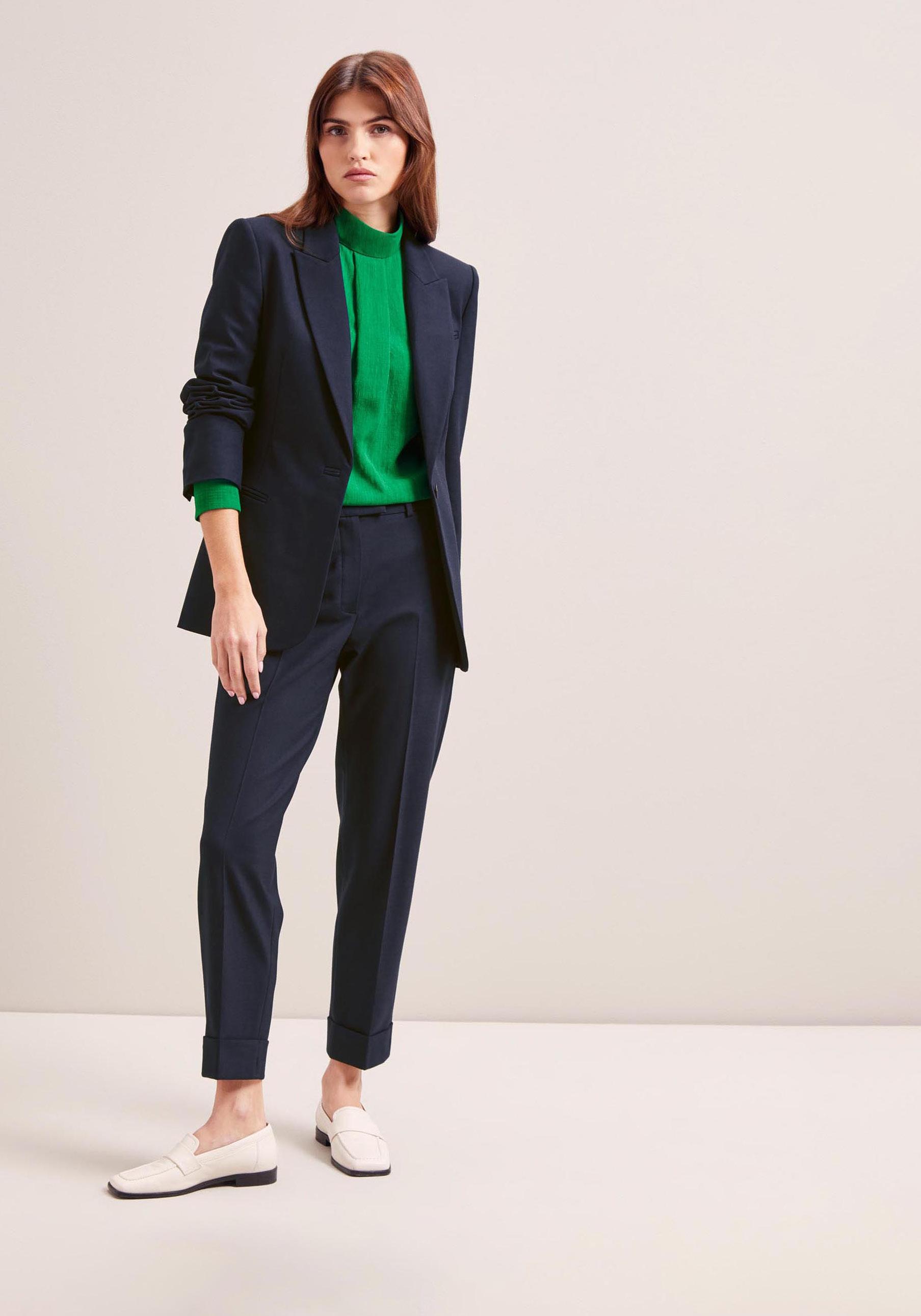 Terence Wide Leg Trouser in Stretch Wool Blend Navy. Also available in Black. £280