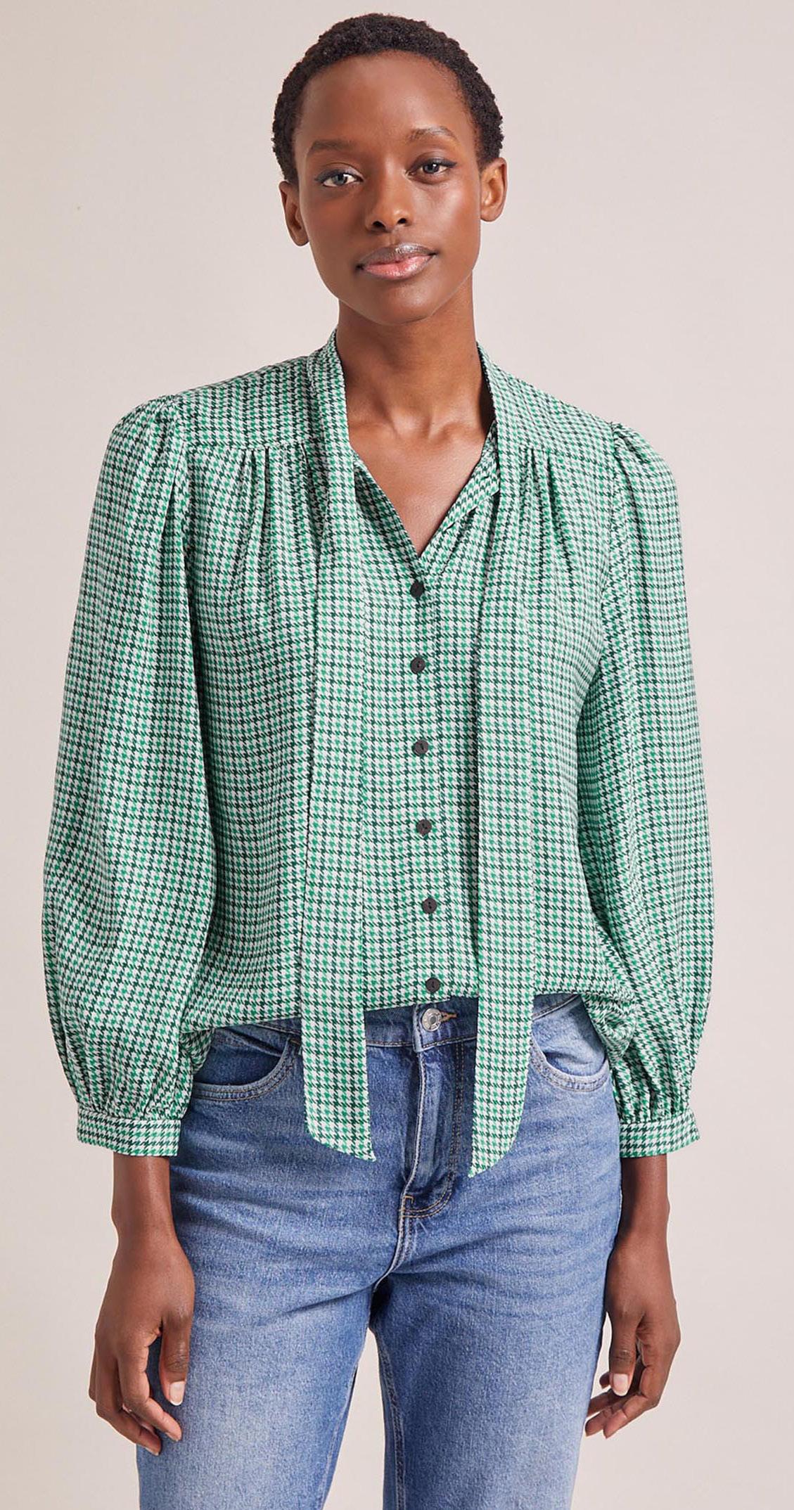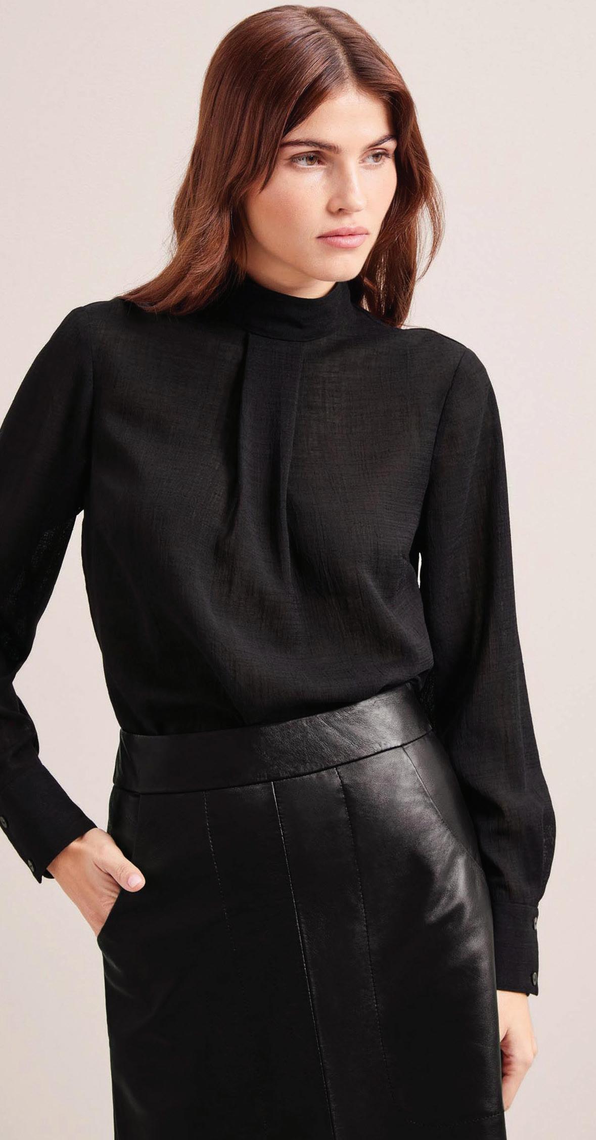 Riley Funnel-Neck Blouse in Techni Voile Emerald Green. Also available in Black, Navy, Cornflower Blue and Cream. Machine washable. £180