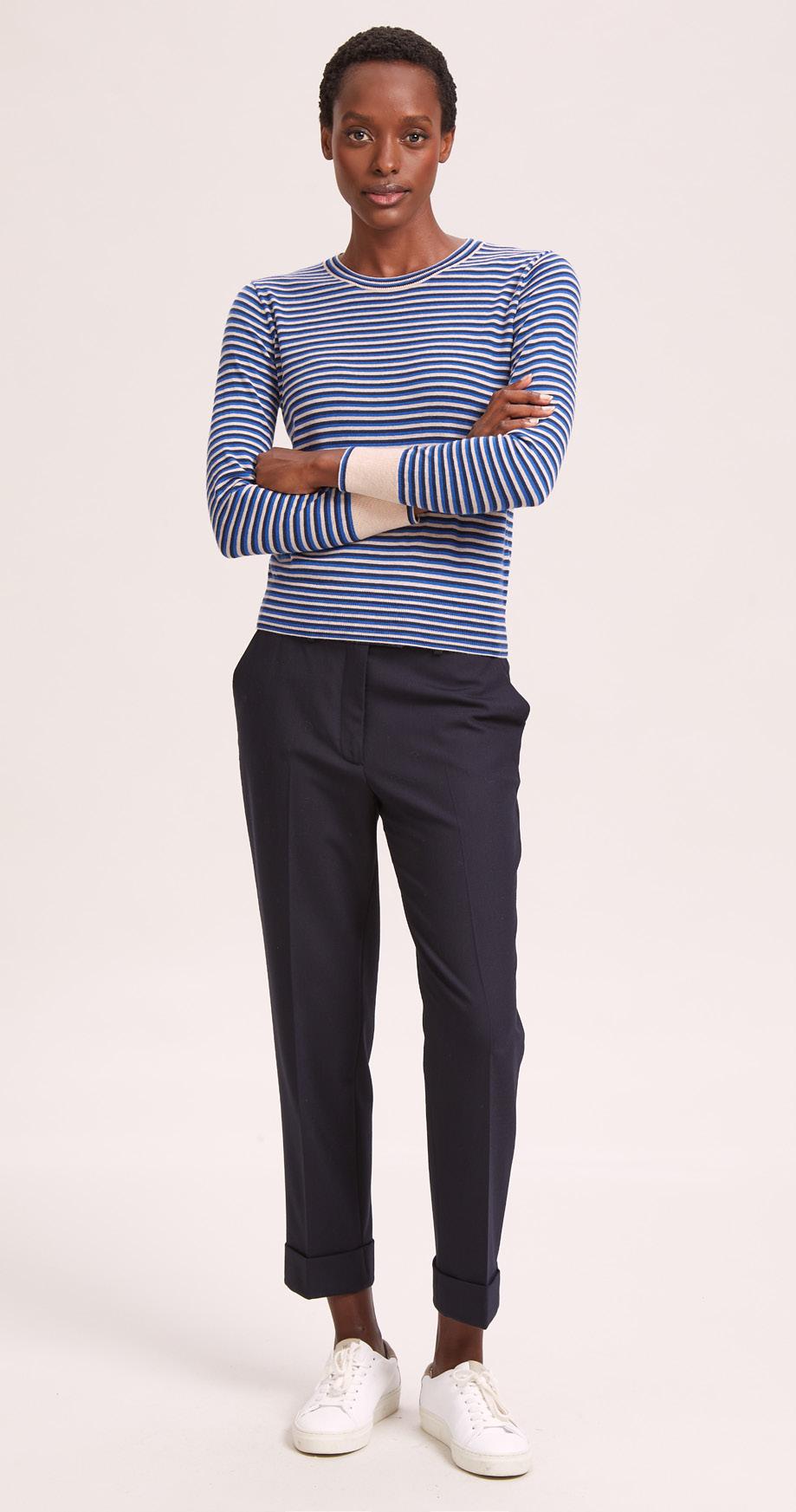 Fine, lightweight knits are a British summer staple. Our best-selling Jodi is back with new striped iterations in a cotton-merino blend. Timelessly chic and versatile, it works for both city and country or throw on over a bikini when it gets chilly on the beach.