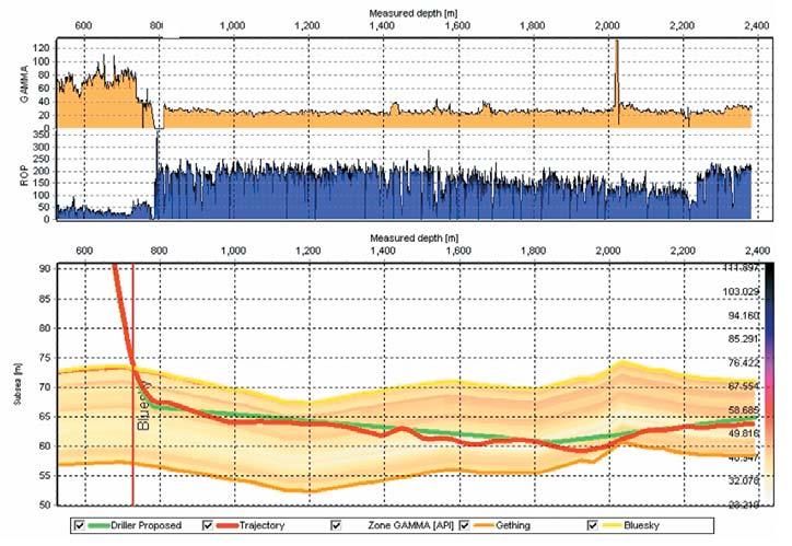 Figure 3 shows a proposed and actual well through a porosity model.The geological profile also integrates MWD,and LWD data, as well as the drilling plan.
