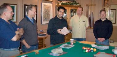 oil and gas exploration community. Whenever there is a field operation Hotchkiss is the first to volunteer to go. Most recently Hotchkiss determined that the area in Ontario where his son has a greenhouse operation was prospective for natural gas. Hotchkiss leased the minerals and drilled a well on the property. Hotchkiss was on site for the completion and testing of the successful well and he is currently reviewing the options to tie the well in to supply heat for the green houses. I am currently involved with Hotchkiss in an exploration prospect in northeastern Alberta that we will be drilling early in 2010 and I am sure that Hotchkiss will be on site when the core barrel is recovered. Retirement does not seem to be in Hotchkiss’ vocabulary and most of us can only aspire to have his energy and enthusiasm.