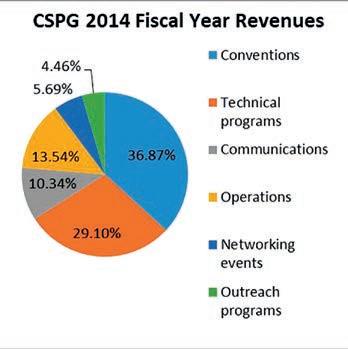 The CSPG 2014 fiscal year was September 1, 2013 through August 31, 2014. Estimated net income was $121,617 which is $85,312 more than budget. The net profit increase above budget was a result of some CSPG events and operational efficiencies out performing budgeted expectations. These included: