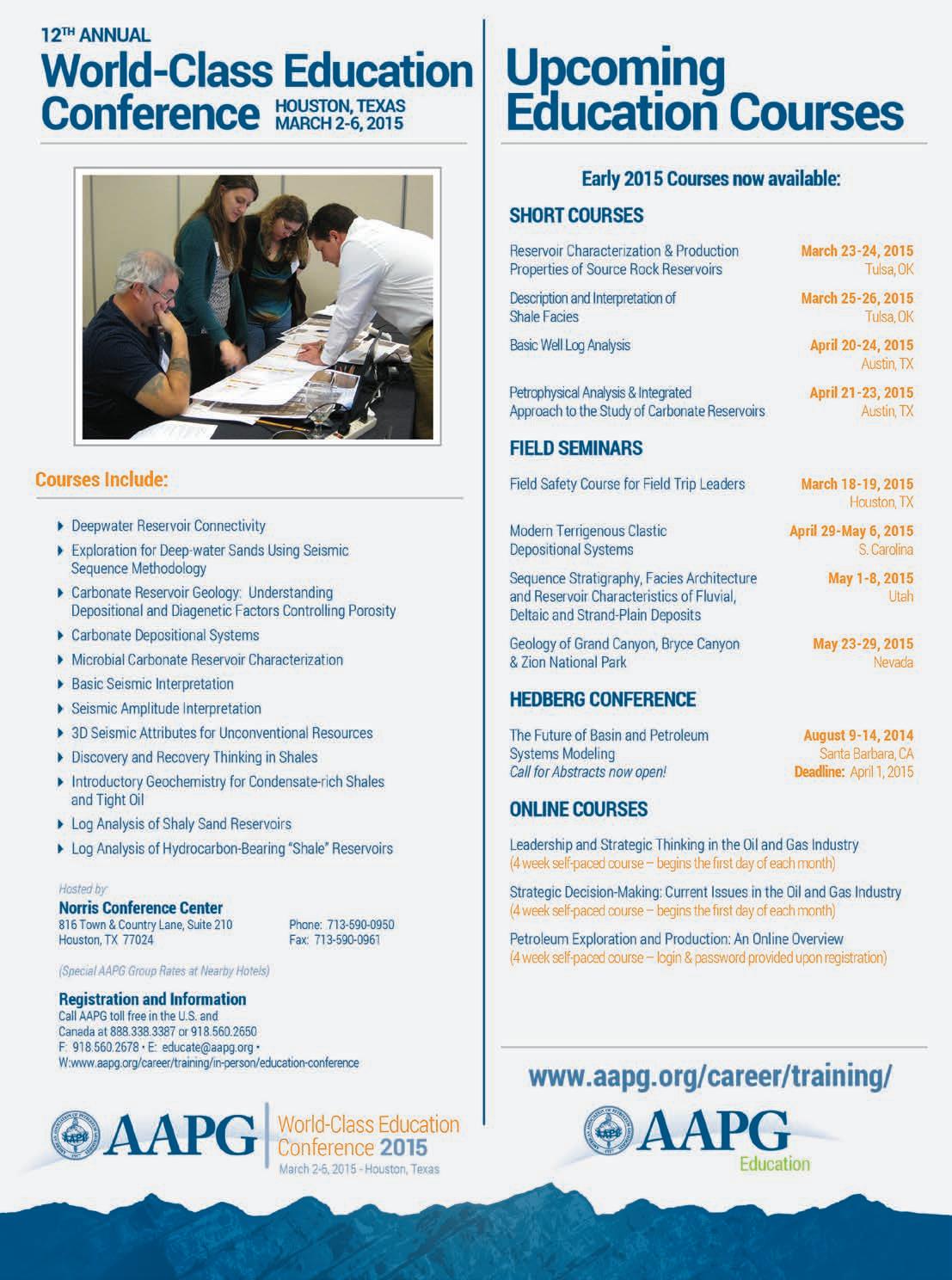 The RESERVOIR is published 11 times per year by the Canadian Society of Petroleum Geologists. This includes a combined issue for the months of July and August. The purpose of the RESERVOIR is to publicize the Society’s many activities and to promote the geosciences. We look for both technical and non-technical material to publish. The contents of this publication may not be reproduced either in part or in full without the consent of the publisher. Additional copies of the RESERVOIR are available at the CSPG office. No official endorsement or sponsorship by the CSPG is implied for any advertisement, insert, or article that appears in the Reservoir unless otherwise noted. All submitted materials are reviewed by the editor. We reserve the right to edit all submissions, including letters to the Editor. Submissions must include your name, address, and membership number (if applicable). The material contained in this publication is intended for informational use only. While reasonable care has been taken, authors and the CSPG make no guarantees that any of the equations, schematics, or devices discussed will perform as expected or that they will give the desired results. Some information contained herein may be inaccurate or may vary from standard measurements. The CSPG expressly disclaims any and all liability for the acts, omissions, or conduct of any third-party user of information contained in this publication. Under no circumstances shall the CSPG and its officers, directors, employees, and agents be liable for any injury, loss, damage, or expense arising in any manner whatsoever from the acts, omissions, or conduct of any third-party user.